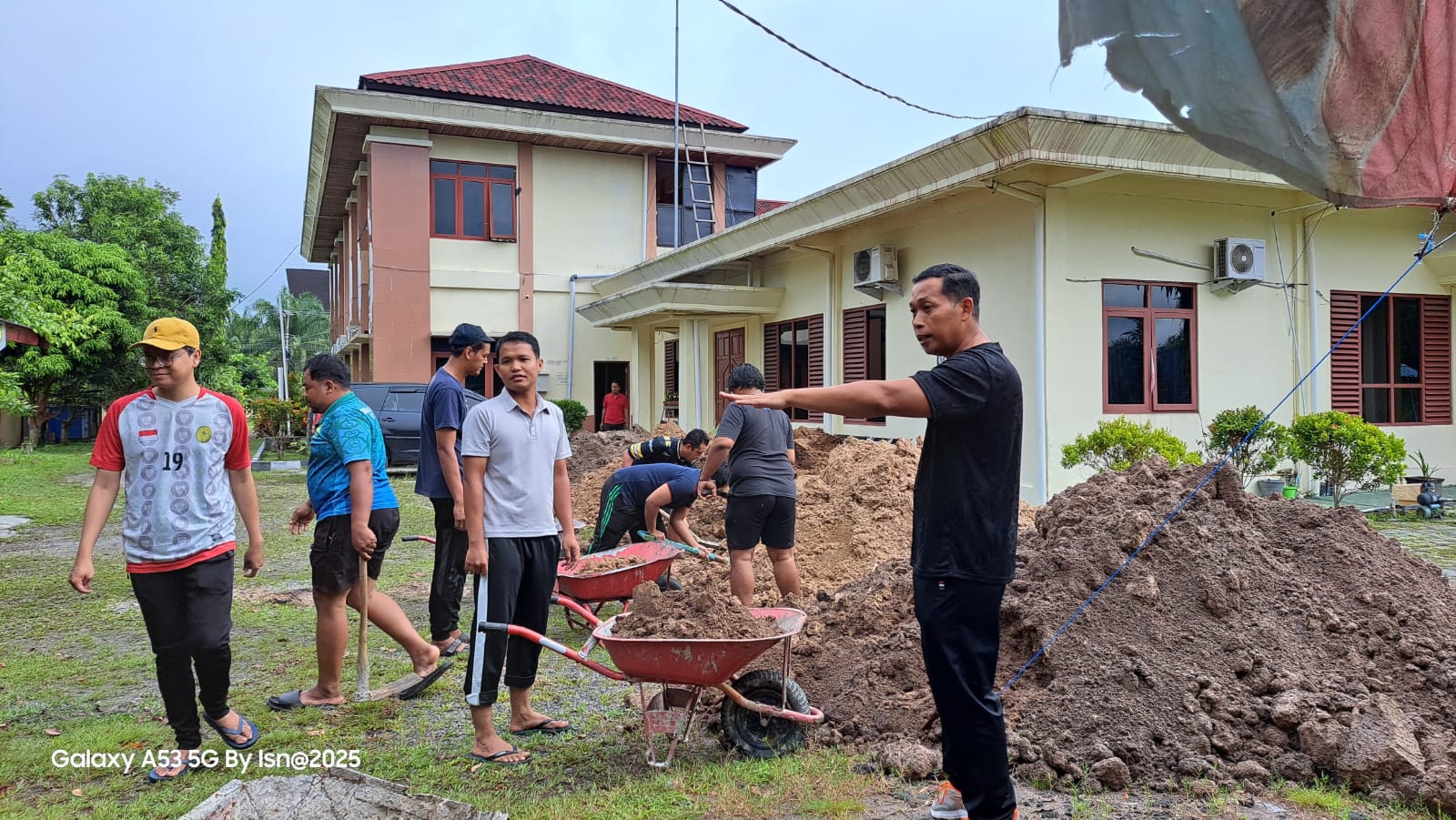 Agenda kali ini disamping bersih-bersih halaman belakang, namun yang utama adalah meratakan tanah uruk untuk memperluas lahan parkir bagi pegawai. Dengan penuh kebersamaan dan semangat para pegawai mengangkut dan meratakan tanah uruk yang telah dibeli. Ada juga yang mencabuti rumput, menyapu halaman, dan merapikan fasilitas luar, hingga menata kembali area taman agar tetap indah dipandang.