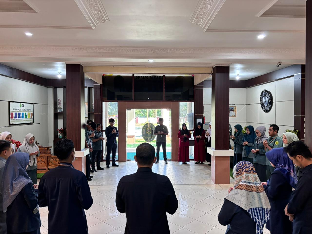 Selasa, 25 November 2025 pukul 08.00 WIB sebagaimana yang telah rutin dilaksanakan yaitu kegiatan doa bersama pagi untuk mengawali aktivitas seluruh aparatur Pengadilan Agama Sampit bertempat di Lobby Depan.