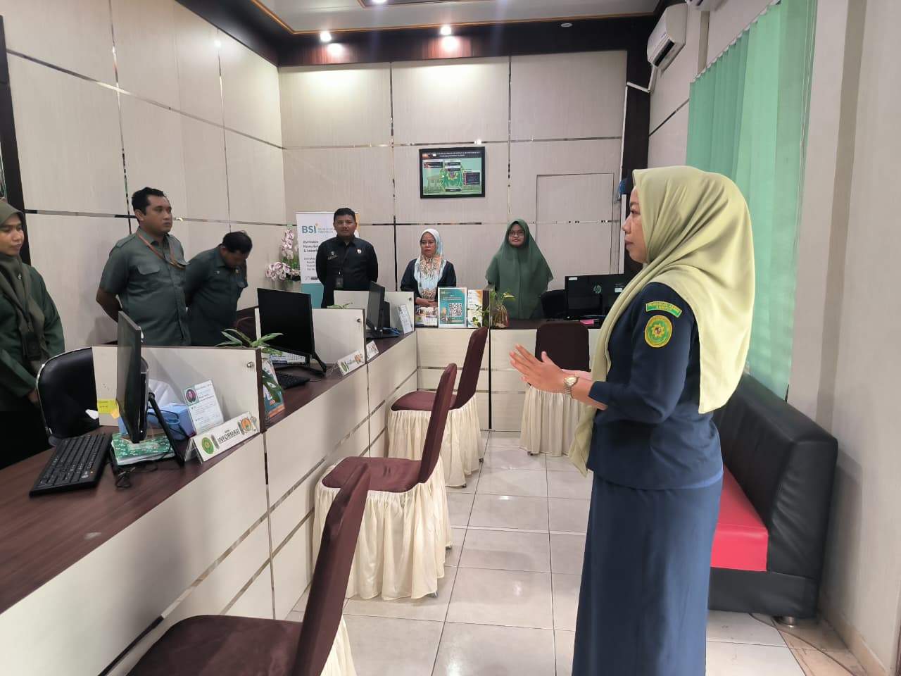 Selain itu, Ibu Mardiyatur Rahmah mengharapkan agar para petugas PTSP untuk mampu memanajemen konflik pribadi dengan baik agar tetap bisa memberikan pelayanan yang prima di kondisi apapun. Briefing ditutup dengan yel-yel semangat pagi agar meningkatkan semangat dalam memberikan pelayanan kepada para pihak.