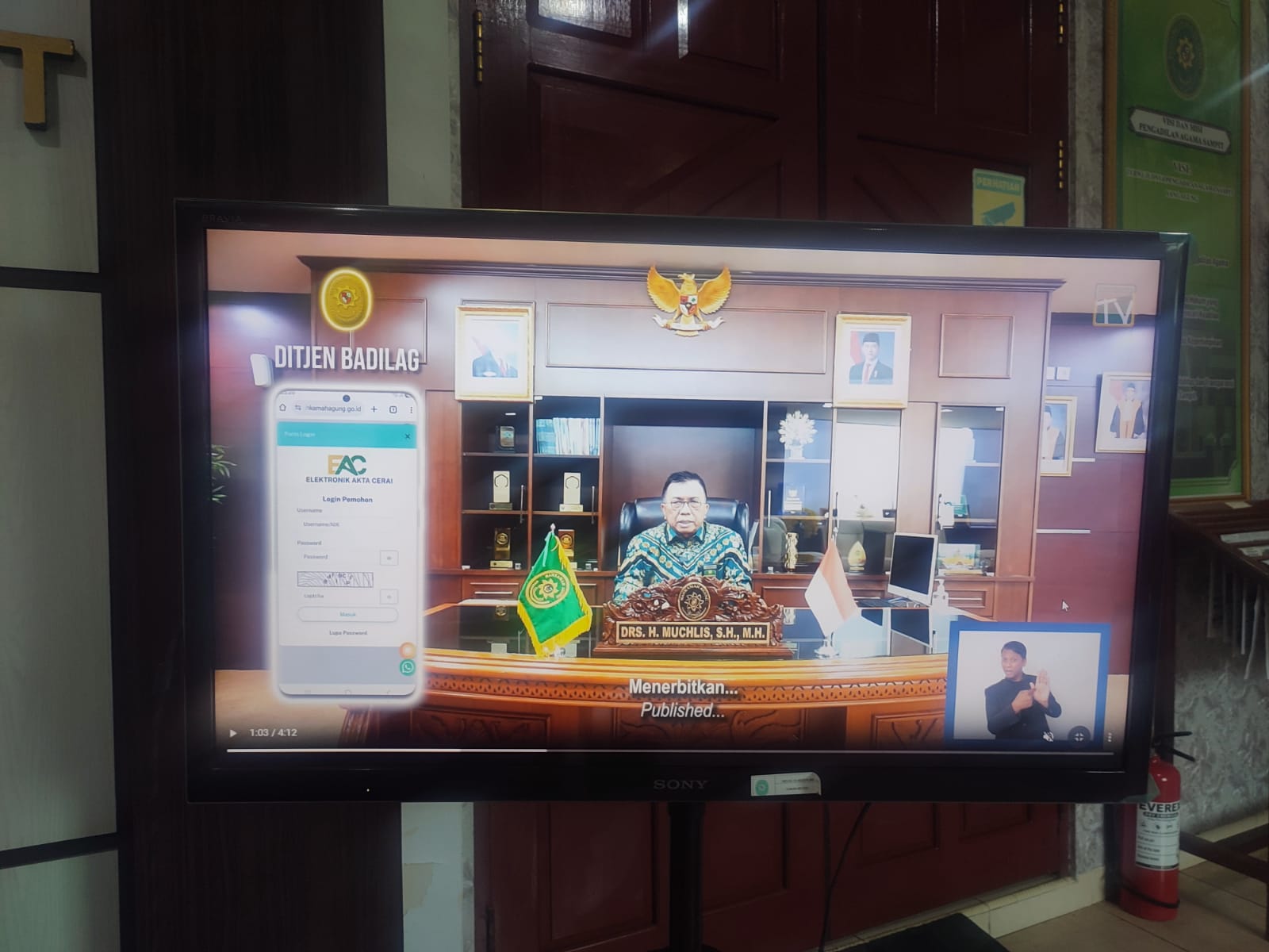 PA Sampit Tindak Lanjuti Surat Dirjen Badilag, Tayangkan Video Elektronik Akta Cerai di Ruang Pelayanan