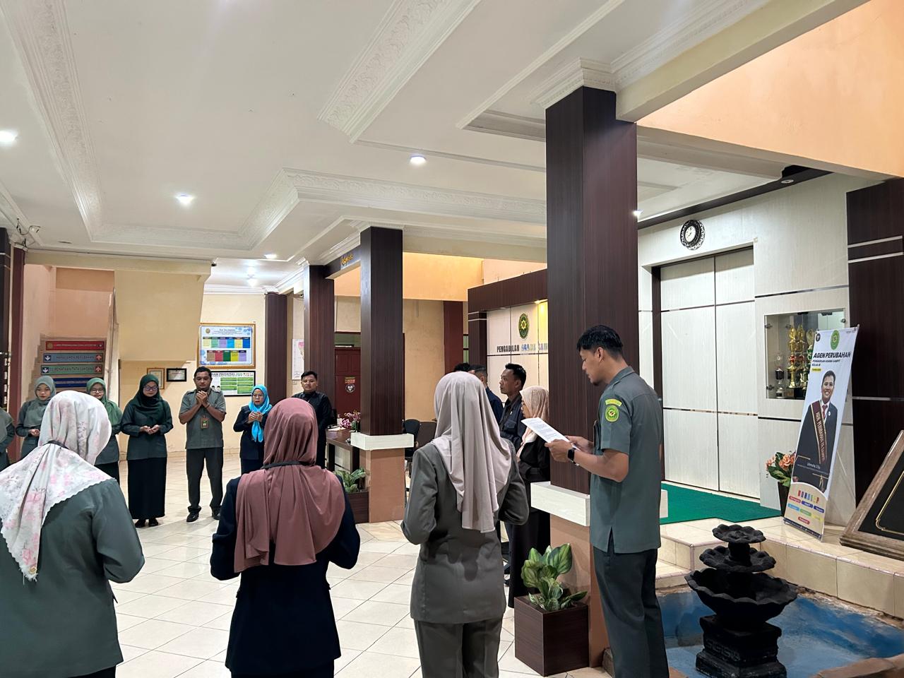 Aparatur Pengadilan Agama Sampit Kelas IB mengawali aktivitas kerja Rabu pagi dengan melaksanakan doa bersama. Kegiatan ini diikuti oleh pimpinan dan seluruh aparatur sebagai bagian dari rutinitas sebelum pelayanan dimulai.