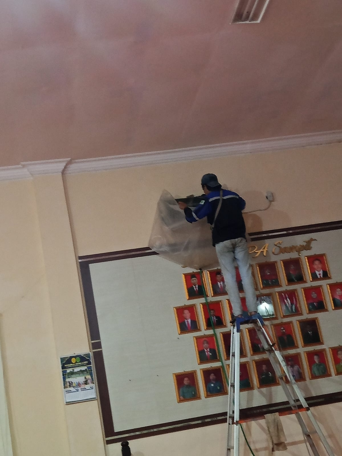 Service AC dilakukan sebagai upaya menjaga kenyamanan ruangan aula yang selama ini digunakan untuk berbagai kegiatan, seperti rapat, pembinaan, dan kegiatan internal lainnya. Dengan perawatan rutin, kondisi pendingin ruangan diharapkan tetap optimal dan mendukung kenyamanan seluruh aparatur.