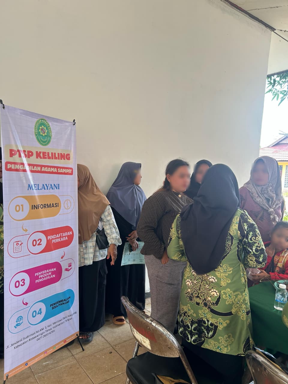 Banner tersebut berfungsi sebagai media informasi bagi masyarakat pencari keadilan terkait jenis layanan yang diberikan oleh Pengadilan Agama Sampit Kelas IB, antara lain pelayanan informasi, pendaftaran perkara, penyerahan produk pengadilan, serta pengembalian sisa panjar. Keberadaan banner ini memudahkan masyarakat untuk memahami alur pelayanan selama pelaksanaan sidang di luar gedung.