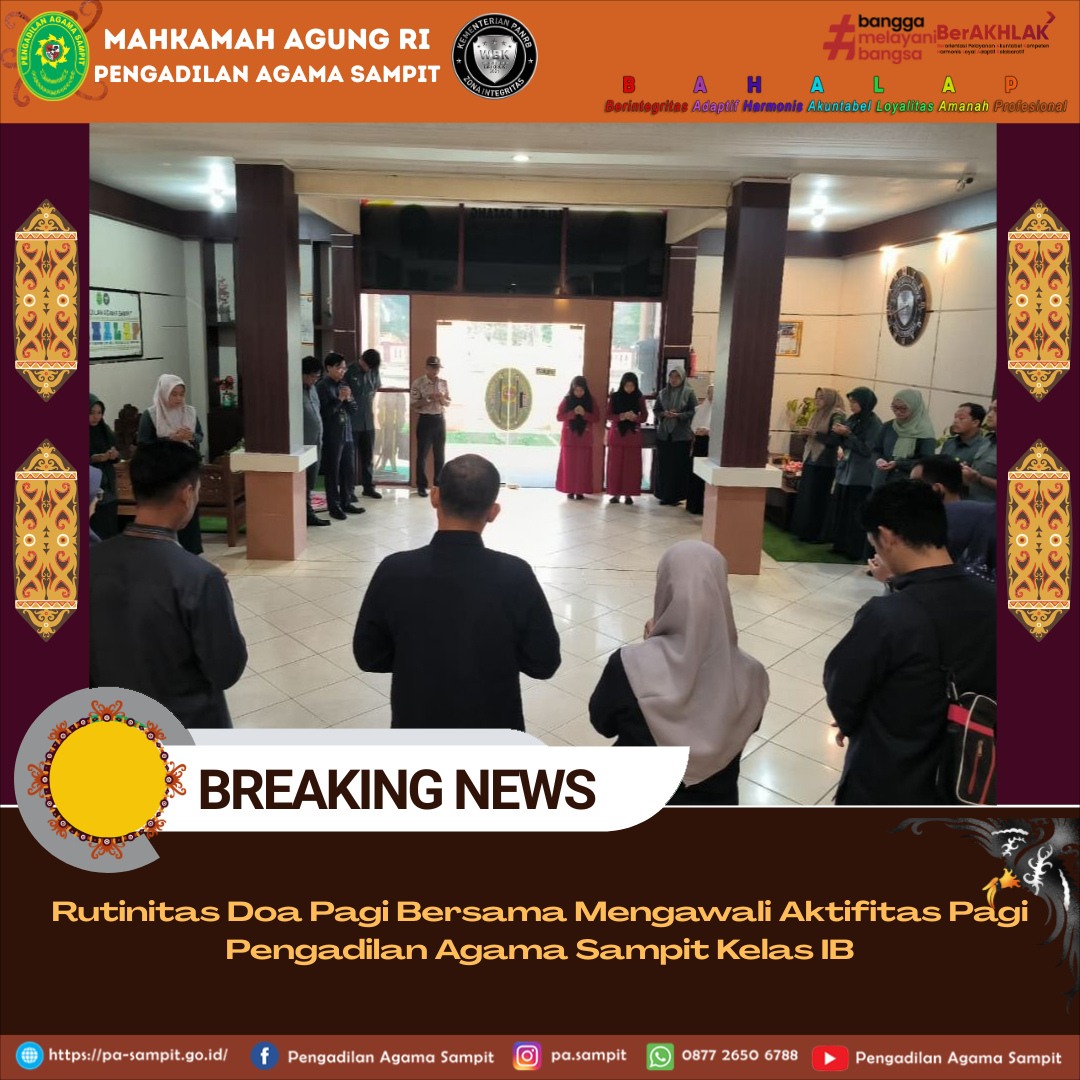 Rutinitas Doa Pagi Bersama Mengawali Aktifitas Pagi Pengadilan Agama Sampit Kelas IB