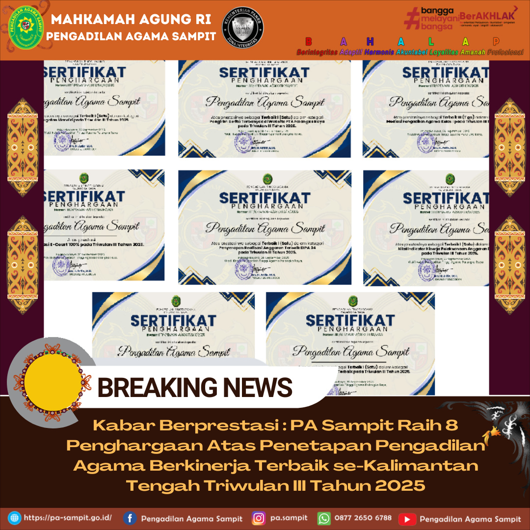 Kabar Berprestasi : PA Sampit Raih 8 Penghargaan Penetapan Pengadilan Agama Berkinerja Terbaik se-Kalimantan Tengah Triwulan III Tahun 2025