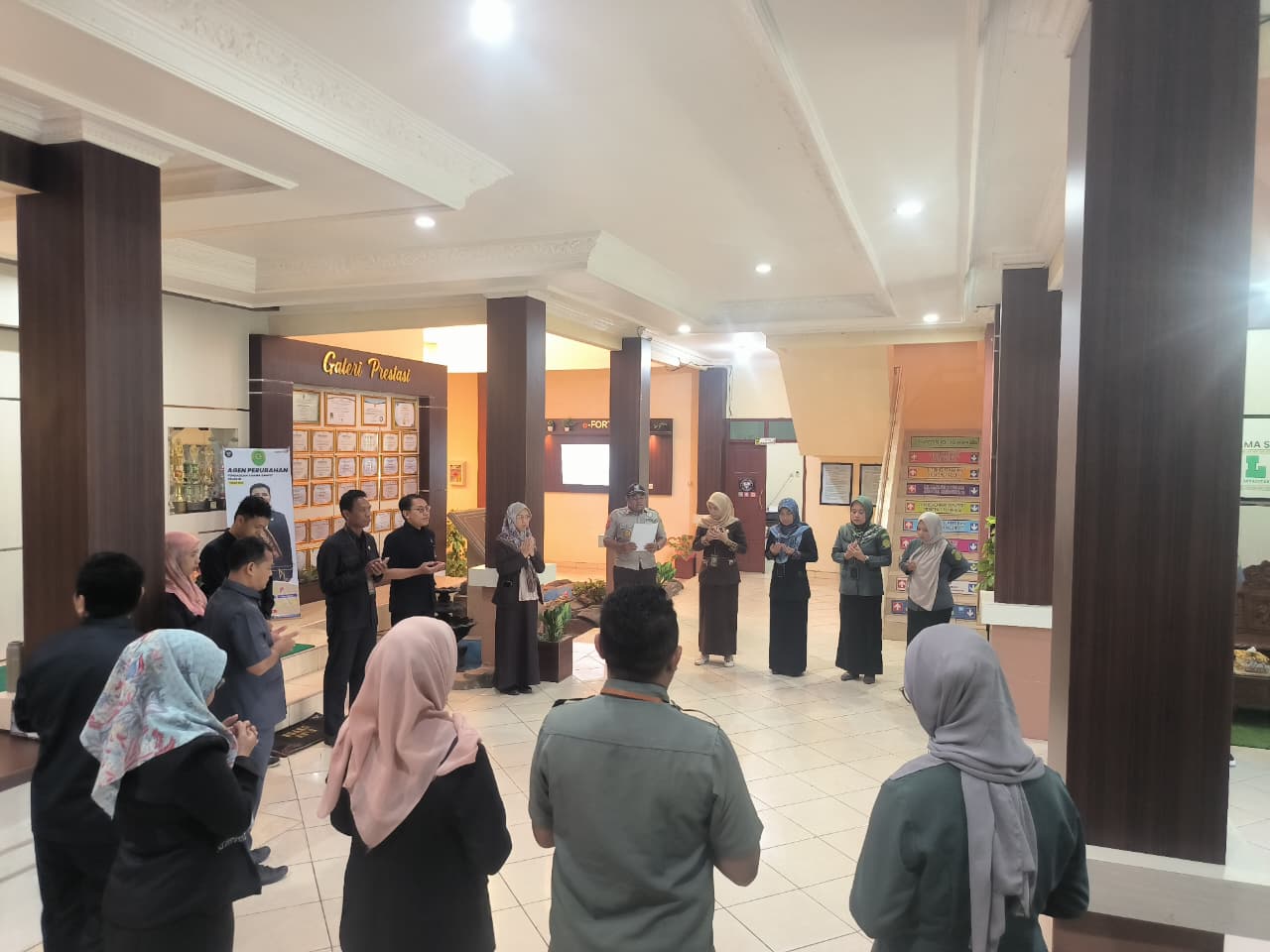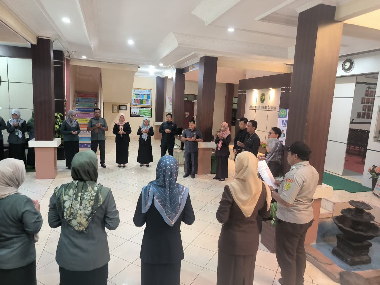 Sampit - Rabu, 5 November 2025 pukul 08.00 WIB dilaksanakan kegiatan doa bersama pagi sebagai aktivitas kegiatan di PA Sampit Kelas IB setiap paginya bagi seluruh aparatur Pengadilan Agama Sampit bertempat di Lobby Depan.