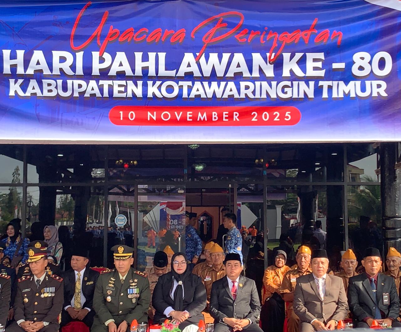 Sampit, 10 November 2025 – Ketua Pengadilan Agama Sampit Kelas IB Mohammad Mahin Ridlo Afif, S.H.I., M.H., menghadiri upacara peringatan Hari Pahlawan ke-80 Tahun 2025 yang dilaksanakan di halaman Kantor Bupati Kotawaringin Timur. Upacara yang berlangsung dengan khidmat tersebut diikuti oleh Wakil Bupati Kotawaringin timur didampingi oleh jajaran Forum Koordinasi Pimpinan Daerah (Forkopimda), unsur TNI dan Polri, Aparatur Sipil Negara, pelajar, serta berbagai organisasi masyarakat di Kabupaten Kotawaringin Timur.