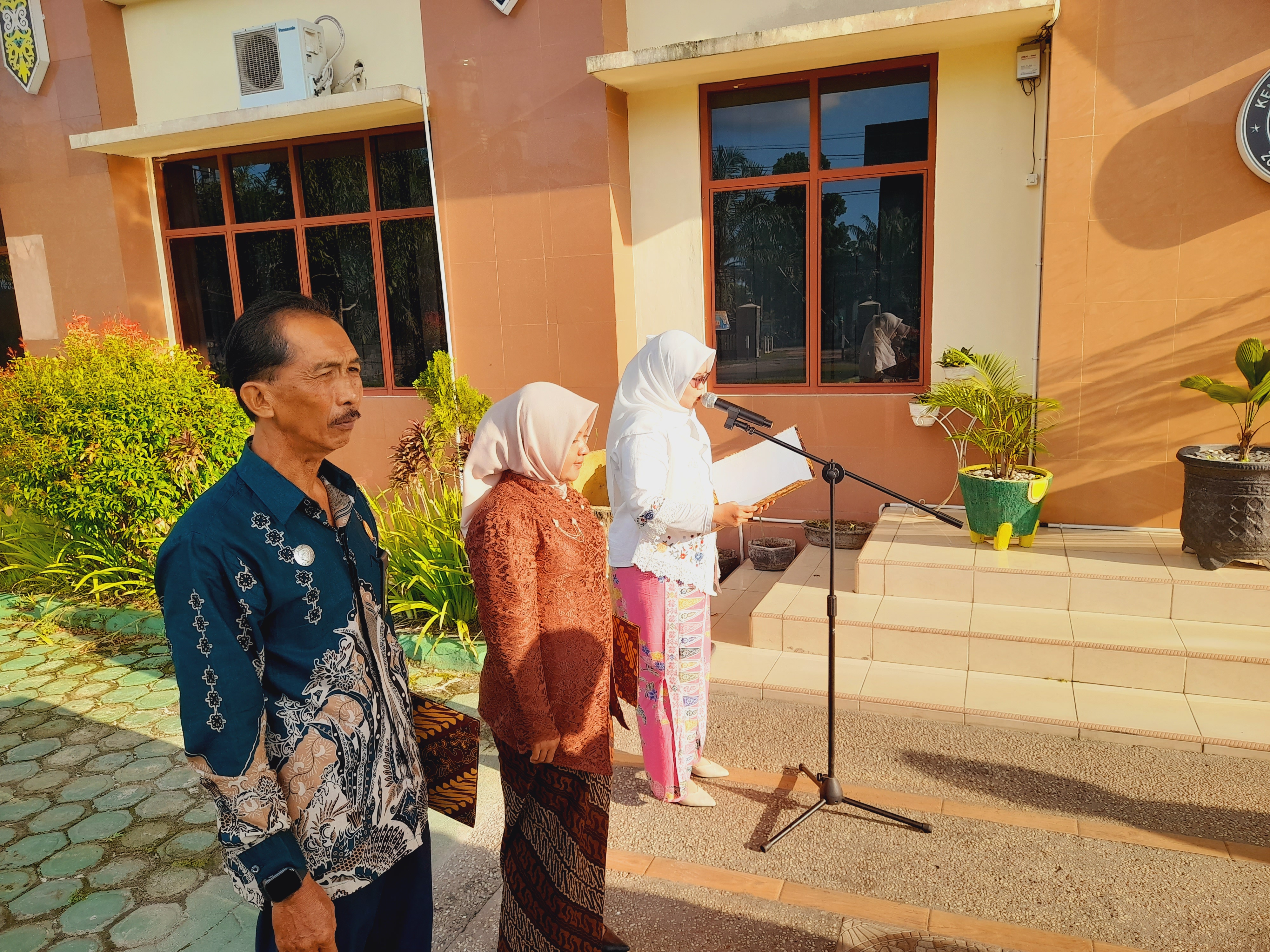 Kegiatan apel dipandu oleh Meliyeni, S.H. selaku pembawa acara (MC) yang memimpin jalannya rangkaian kegiatan dengan baik dan terstruktur. Apel Jumat sore ini menjadi momentum untuk melakukan evaluasi singkat terhadap pelaksanaan tugas selama sepekan sekaligus memperkuat kedisiplinan dan kebersamaan antar pegawai.