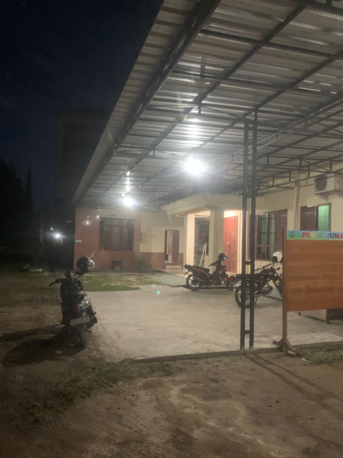 Penerangan yang telah terpasang memberikan perubahan signifikan terhadap kondisi area tersebut, yang sebelumnya minim cahaya. Kini, area belakang kantor, termasuk ruang tunggu outdoor, menjadi lebih aman dan mendukung aktivitas yang masih berlangsung di luar jam kerja.