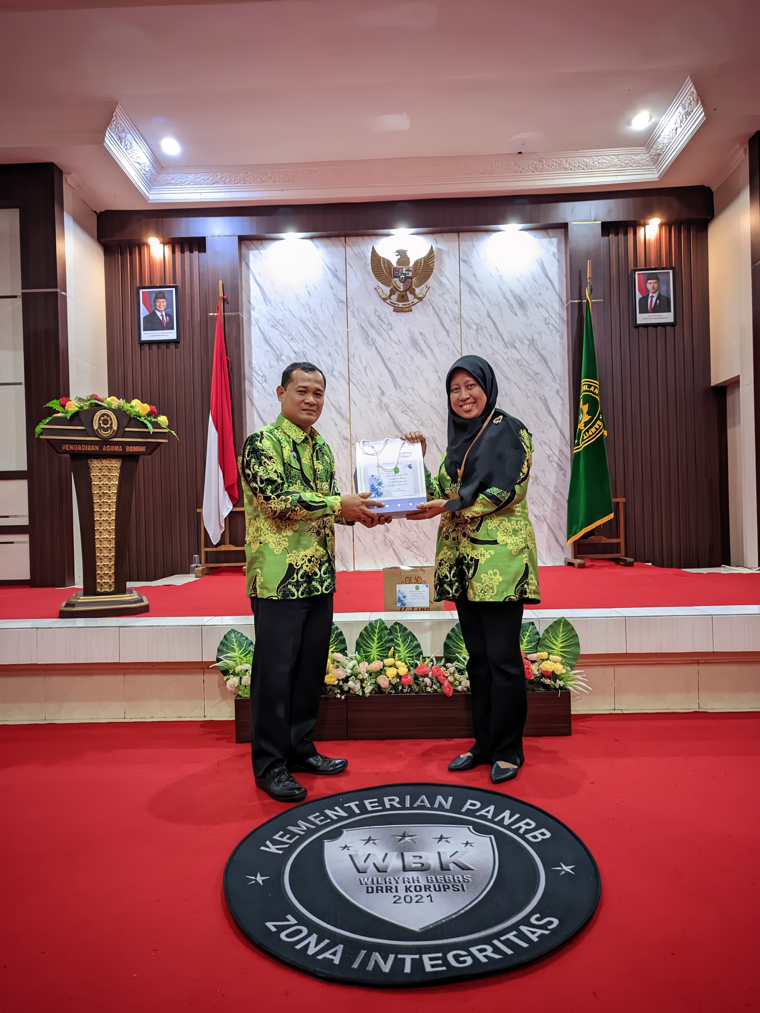 Acara diakhiri dengan penyerahan cinderamata sebagai tanda kenang-kenangan dari seluruh pegawai Pengadilan Agama Sampit kepada Ibu Ema Fatma Nuris. Tak lupa ucapan selamat dan foto bersama menutup jalanya kegiatan Pengantar Alih Tugas Ketua Pengadilan Agama Sampit.