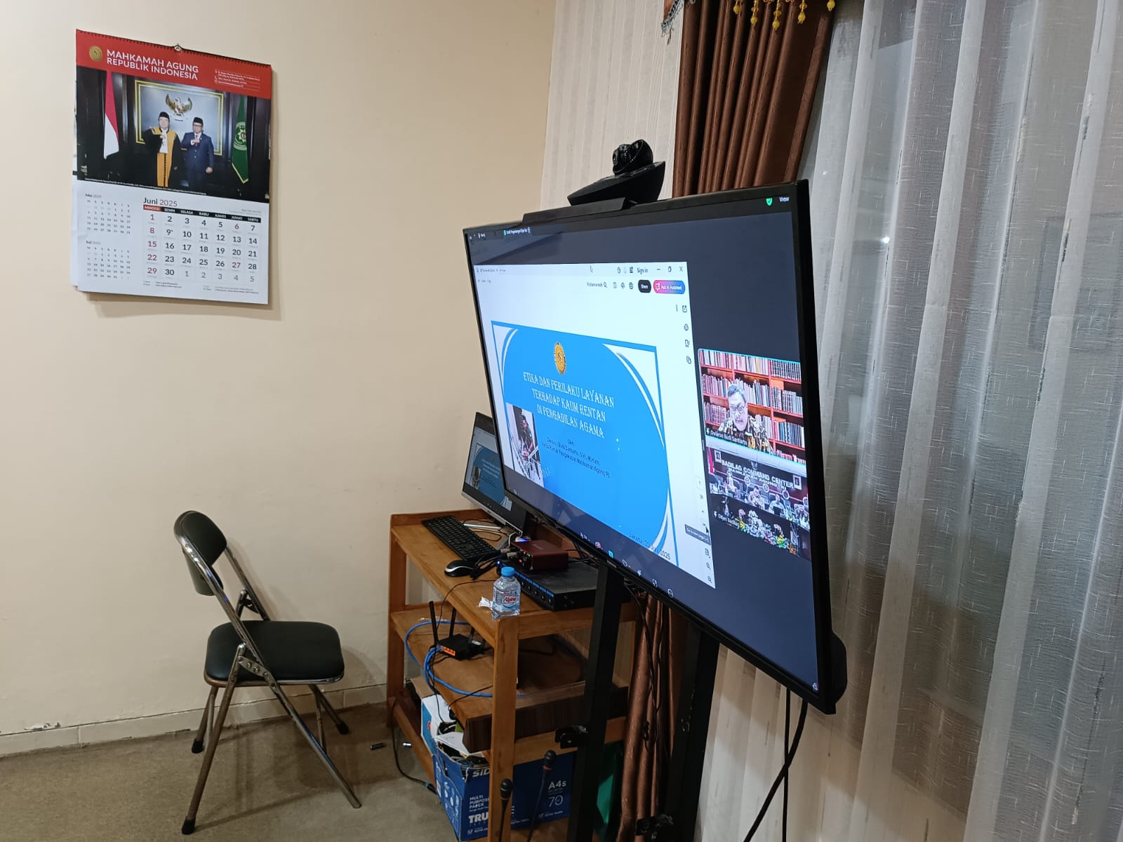 Jum'at, 20 Juni 2025 pukul 08.00 WIB Ketua Pengadilan Agama Sampit Ema Fatma Nuris, S.H.I. didampingi oleh Tenaga Teknis lainnya mengikuti Bimbingan Teknis Kaum Rentan secara daring, bertempat di Ruang Media Center. Kegiatan ini diselenggarakan oleh Direktorat Jenderal Badan Peradilan Agama (Dirjen Badilag) Mahkamah Agung RI melalui platform Zoom Meeting untuk memperkuat pelayanan hukum bagi kelompok rentan.