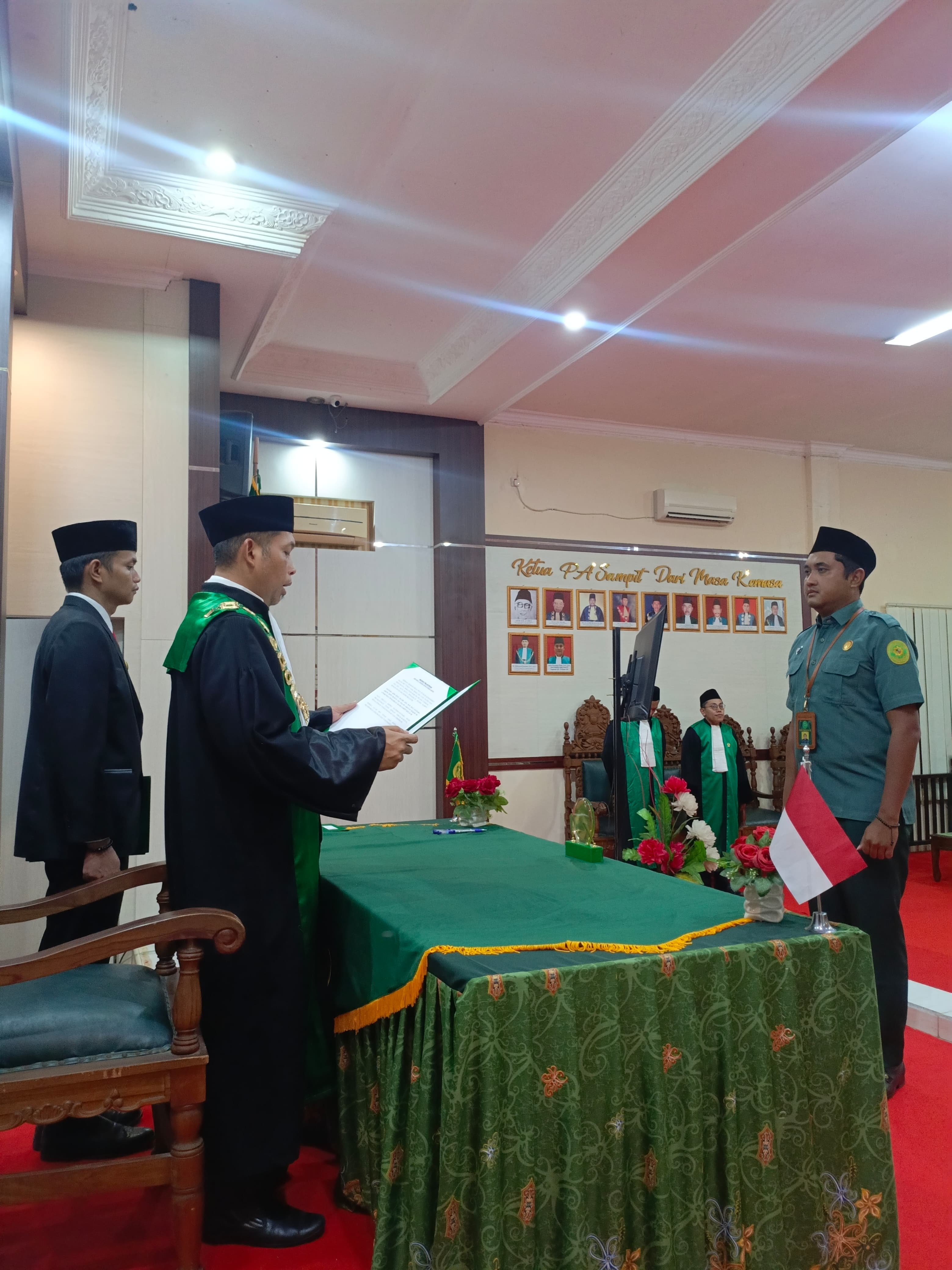 Selasa, 1 Juli 2025 – Bertempat di Ruang Aula Pengadilan Agama Sampit, Ketua Pengadilan Agama Sampit Mohammad Mahin Ridlo Afifi, S.H.I., M.H. melantik dan mengambil Sumpah Jabatan Apriansyah, S.H., sebagai Panitera Pengganti Pengadilan Agama Sampit yang sebelumnya menjabat sebagai Jurusita pada Pengadilan Agama Sampit Kelas IB.