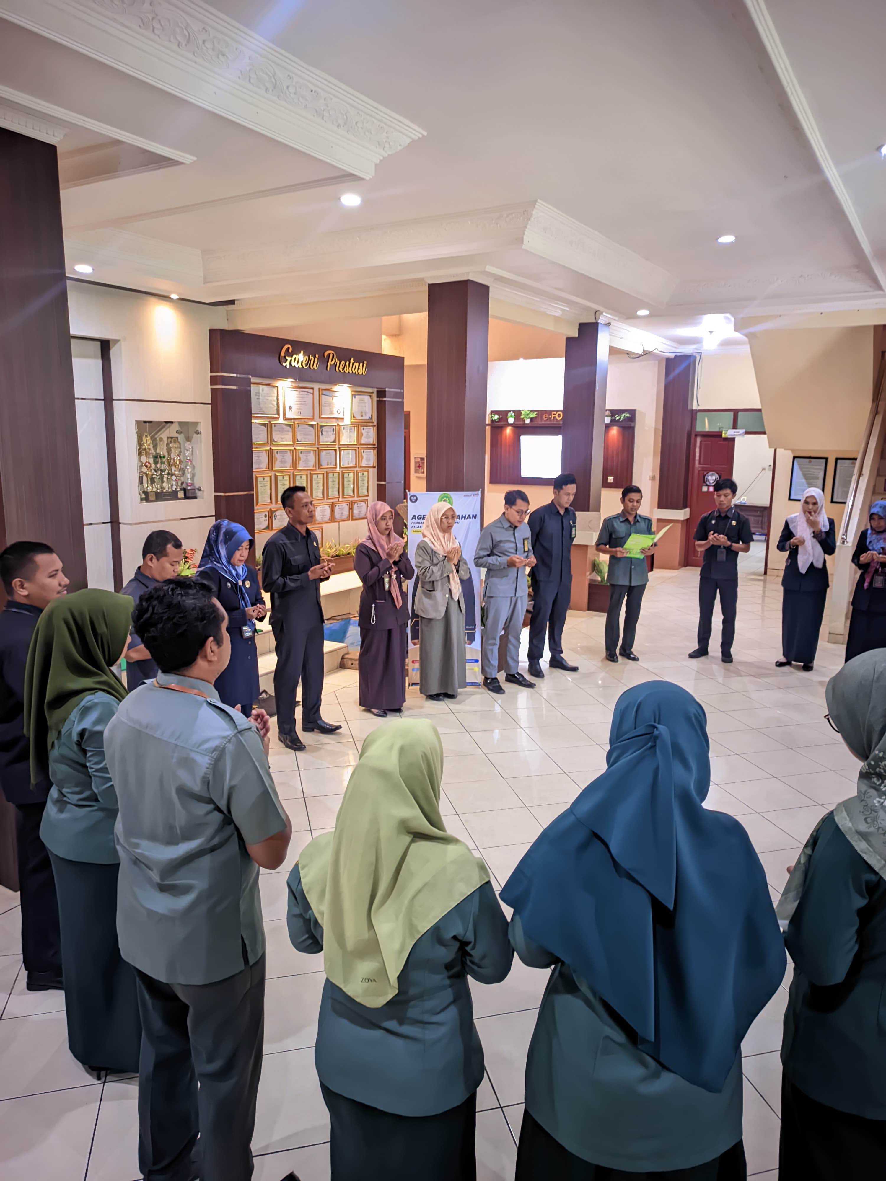 Selasa, bertempat di lobi depan kantor sebagai bentuk melibatkan Allah dalam memulai kegiatan, seluruh Aparatur PA Sampit melaksanakan kegiatan rutin doa bersama (8/7/2025). Pada kesempatan kali ini PPNPN/Honorer Fahmi Fardiansyah, S.H, bertugas pemimpin doa. Melibatkan segala sesuatu hal dengan Tuhan adalah hal yang fundamental. Apalagi kita sebagai umat muslim doa merupakan senjata. Tiada yang bisa mengubah takdir kecuali doa.