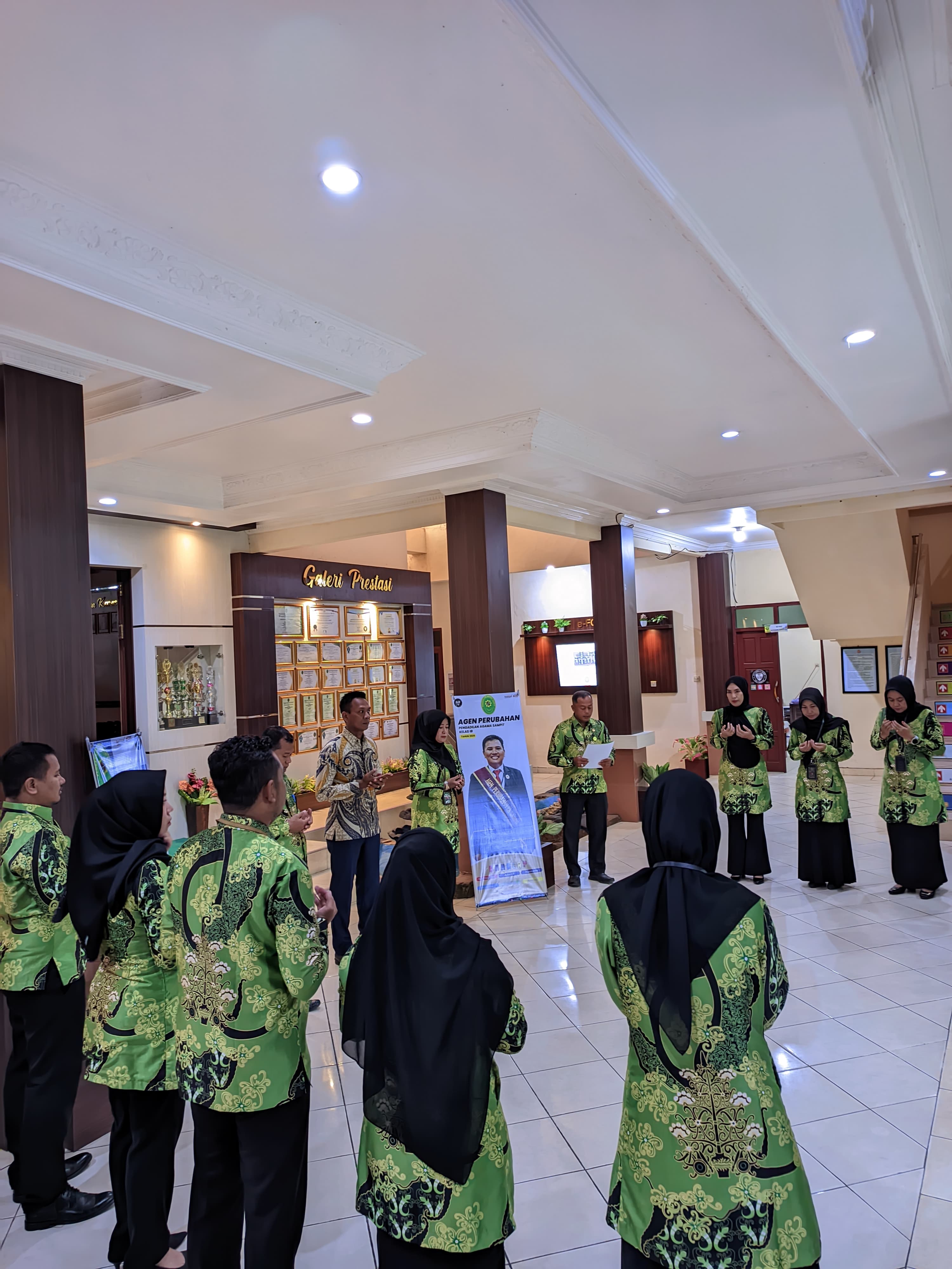 Kamis, bertempat di lobi depan kantor sebagai bentuk melibatkan Allah dalam memulai kegiatan, seluruh Aparatur PA Sampit melaksanakan kegiatan rutin doa bersama (10/7/2025). Pada kesempatan kali ini PPNPN/Honorer Wahyudi, bertugas pemimpin doa. Melibatkan segala sesuatu hal dengan Tuhan adalah hal yang fundamental. Apalagi kita sebagai umat muslim doa merupakan senjata. Tiada yang bisa mengubah takdir kecuali doa.