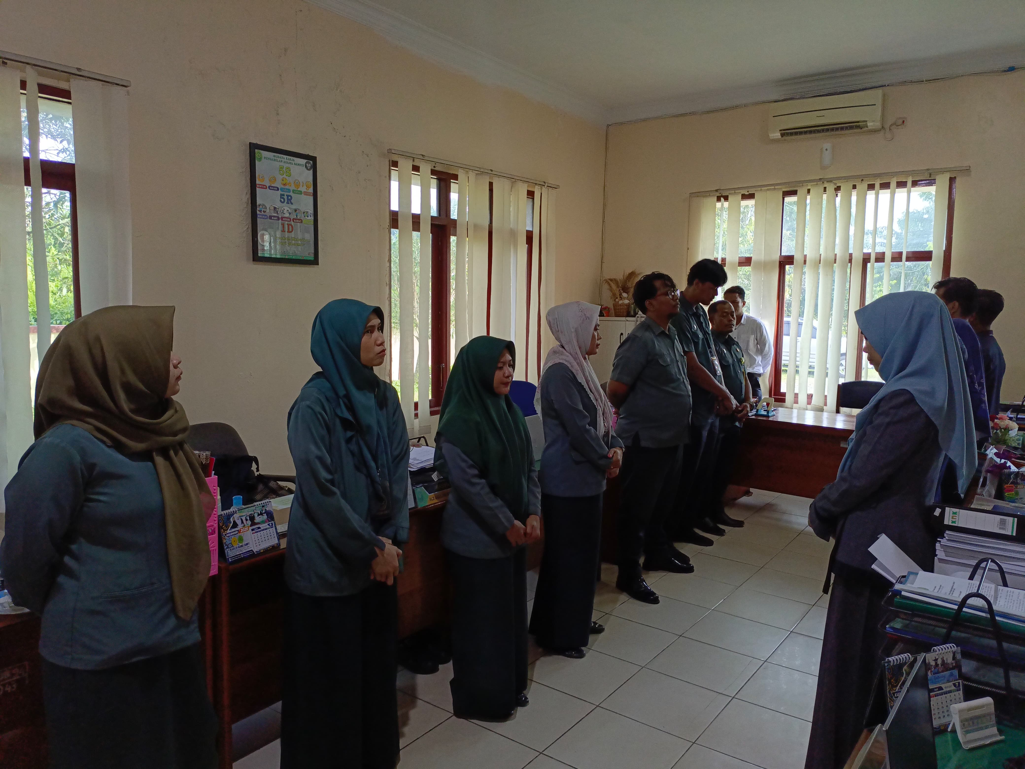 Rabu, 23 Juli 2025 pukul 08.10 WIB dilaksanakan kegiatan Berapi (Briefing Rabu Pagi) bagian Kesekretariatan Pengadilan Agama Sampit, sebagai Pengarah Briefing kali ini yaitu Plt. Kasubbag Umum dan Keuangan Dwira Kurnianto Widodo, S.T., diikuti oleh Sekretaris, para Kasubbag/Plt. Kasubbag, Pejabat Fungsional, Staf Pelaksana serta PPNPN dan Honorer Pengadilan Agama Sampit. Briefing Rabu Pagi seperti biasa diawali dengan Yel-yel “Semangat Pagi, Pagi…Pagi…Pagi…Luar Biasa”.