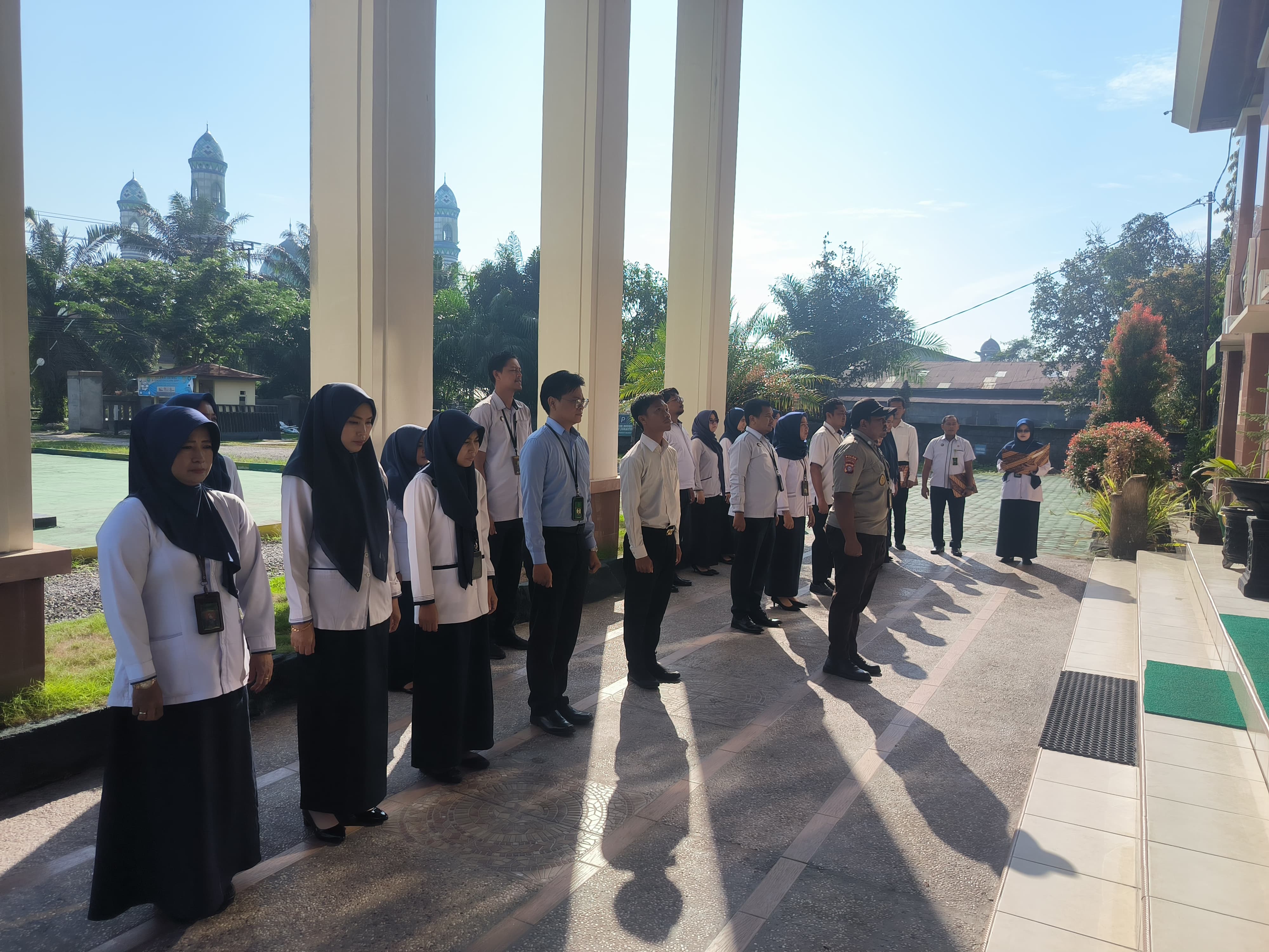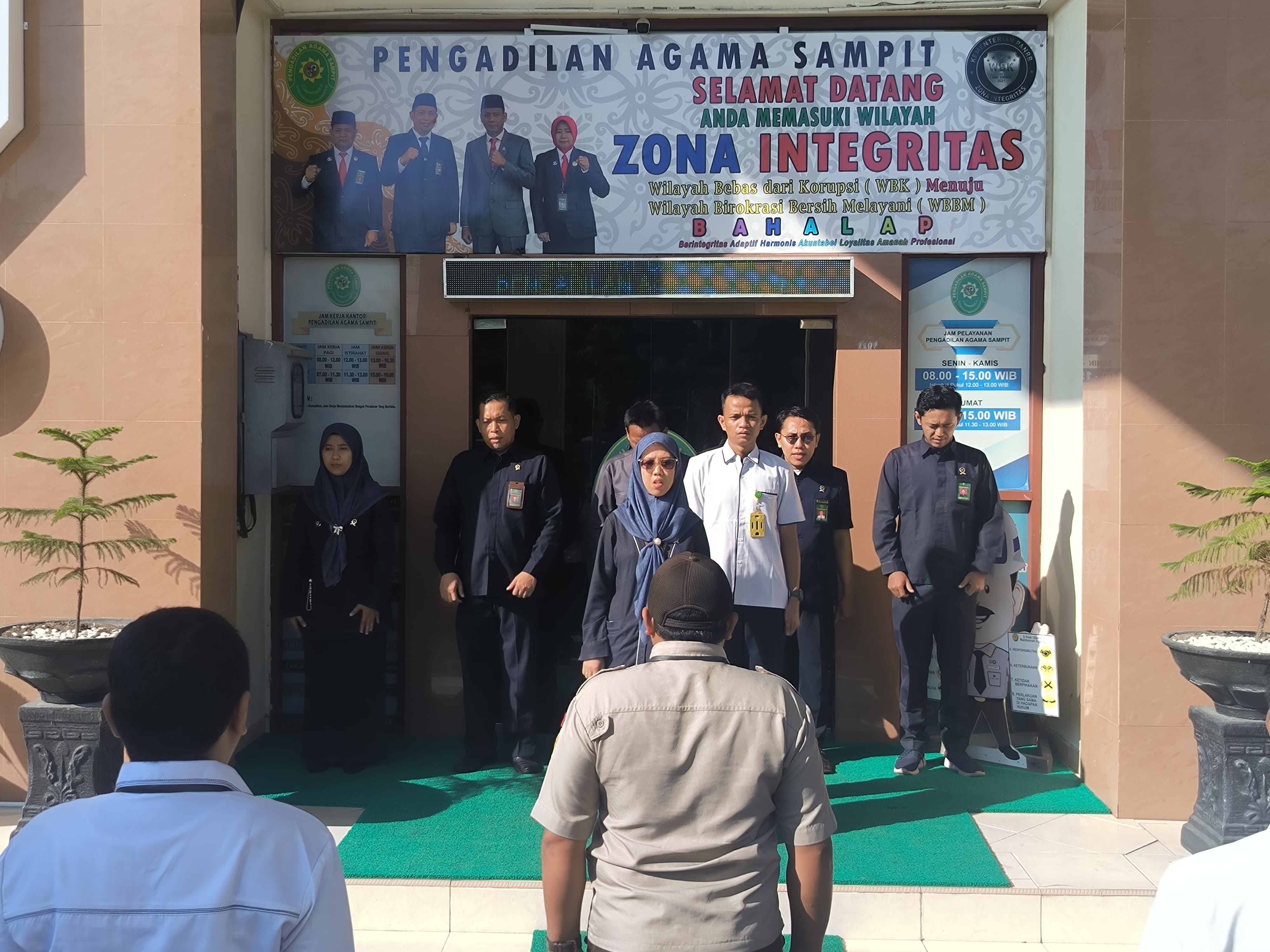 Sampit, 28 Juli 2025, Pembuka rangkaian kegiatan dipekan ini diawali apel senin pagi dikontinuitaskan. Apel dilaksanakan bertempat di Halaman Depan PA Sampit yang diikuti oleh seluruh Hakim dan Aparatur. Dalam apel kali ini security Ragil Tri Wicaksana bertugas sebagai komandan apel dan Hakim Santi, S.Sy., M.H, bertindak sebagai pembina apel. Disisi lain petugas yang kali ini bertugas dengan Meliyeni, S.H, sebagai MC, Pembaca 8 Nilai Utama MA Wahyudi dan Ardi Purwanto, A.Md., bertugas sebagai pembaca doa.