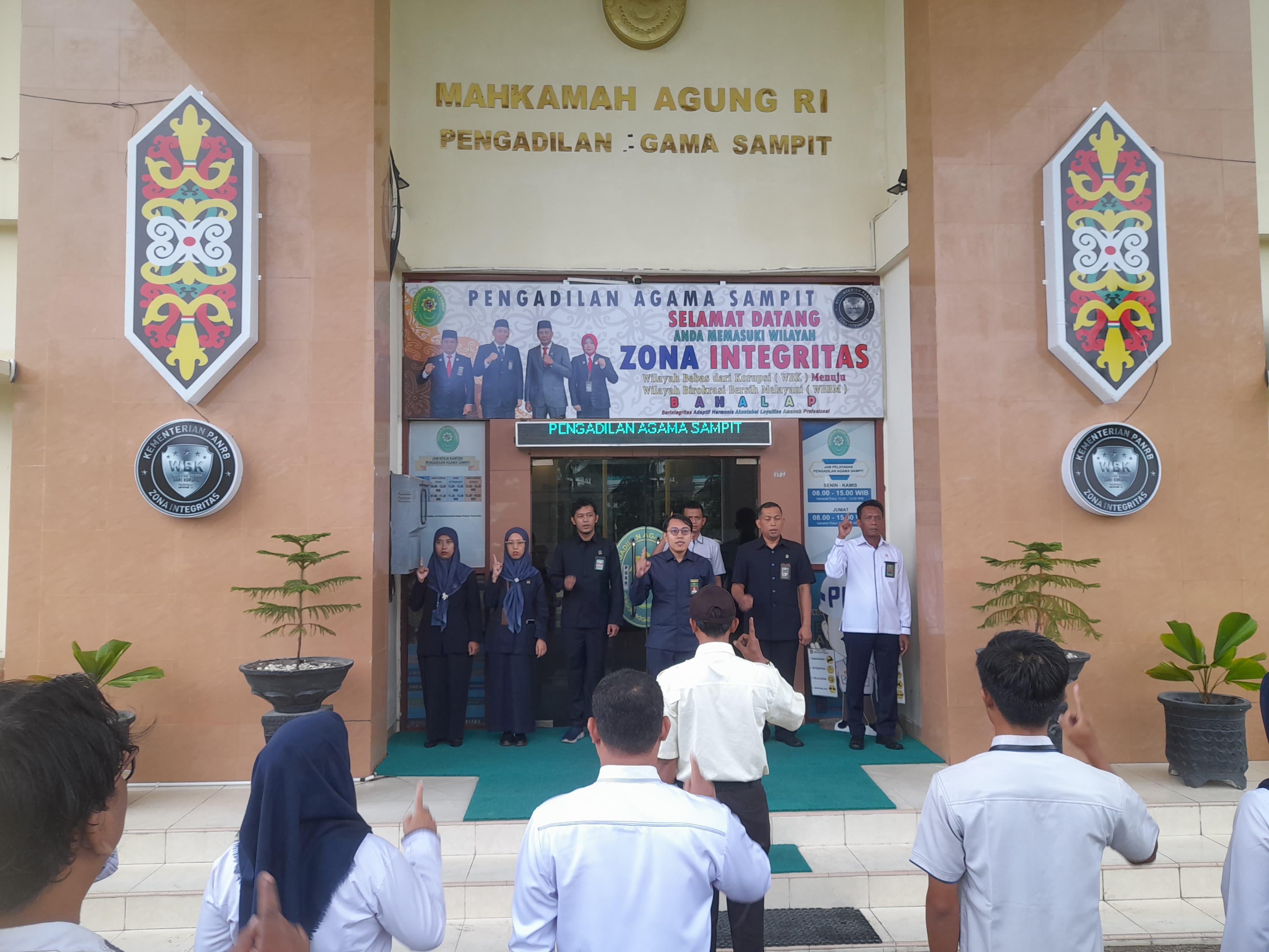 Sampit, 4 Agustus 2025, Pembuka rangkaian kegiatan dipekan ini diawali apel senin pagi dikontinuitaskan. Apel dilaksanakan bertempat di Halaman Depan PA Sampit yang diikuti oleh seluruh Hakim dan Aparatur Serta Siswa PKL SMK Muhammadiyah. Dalam apel kali ini security Jumberi bertugas sebagai komandan apel dan Hakim Adeng Septi Irawan., S.H, bertindak sebagai pembina apel . Disisi lain petugas yang kali ini bertugas dengan Layyinatul Ainiyah Prihatin Ningsih, S.H, sebagai MC, Pembaca 8 Nilai Utama MA Ulinnuha, S.Sy dan Fahmi Fardiansya, S.H., bertugas sebagai pembaca doa.