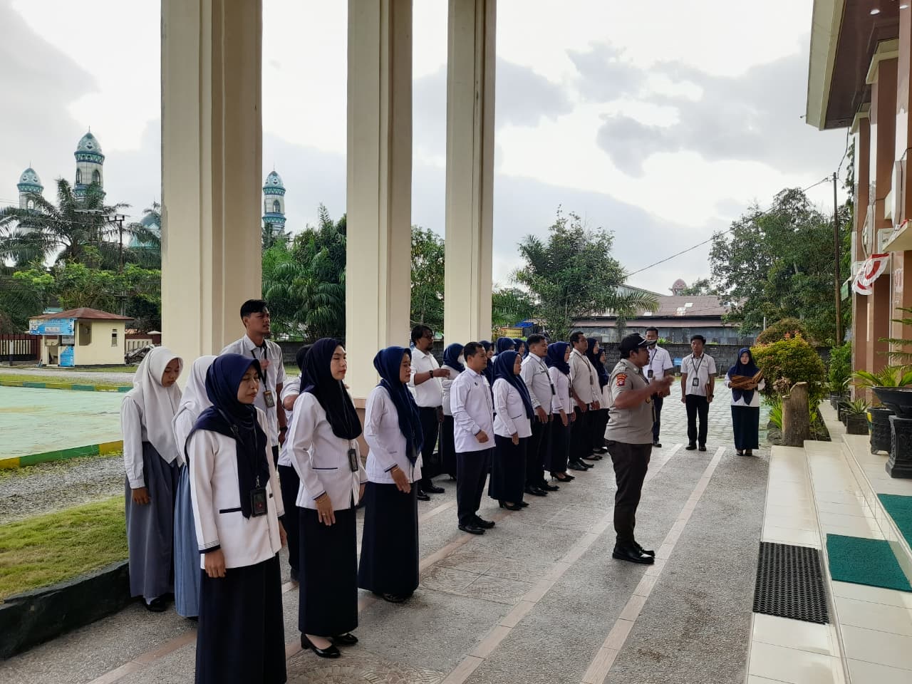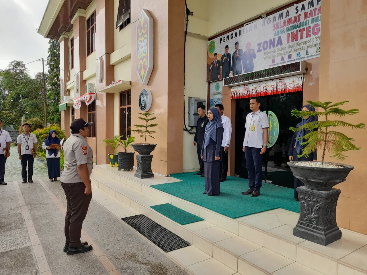 Sampit, 25 Agustus 2025, Pembuka rangkaian kegiatan dipekan ini diawali apel senin pagi dikontinuitaskan. Apel dilaksanakan bertempat di Halaman Depan PA Sampit yang diikuti oleh seluruh Hakim dan Aparatur Serta Siswa PKL SMK Muhammadiyah. Dalam apel kali ini security Ragil Tri Wicaksana bertugas sebagai komandan apel dan Hakim Pengadilan Agama Sampit Kelas IB Barir Masna Af'idah, S.H.I., M.H, bertindak sebagai pembina apel. Disisi lain petugas yang kali ini bertugas dengan Saufi Hadijah, S.H, sebagai MC, Pembaca 8 Nilai Utama MA Rico Bagus Dwi Hasworo, S.Tr.SI., dan Ardi Purwantu, A.Md, bertugas sebagai pembaca doa.