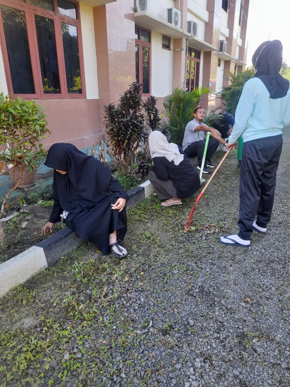 Pemandangan rutin setiap hari Jumat warga PA Sampit gotong royong menjaga kebersihan (19/9/2025). Fokus kegiatan kali ini sebagian membersihkan daun kering yang berjatuhan dan merapikan perkarangan Pengadilan Agama Sampit Kelas IB.