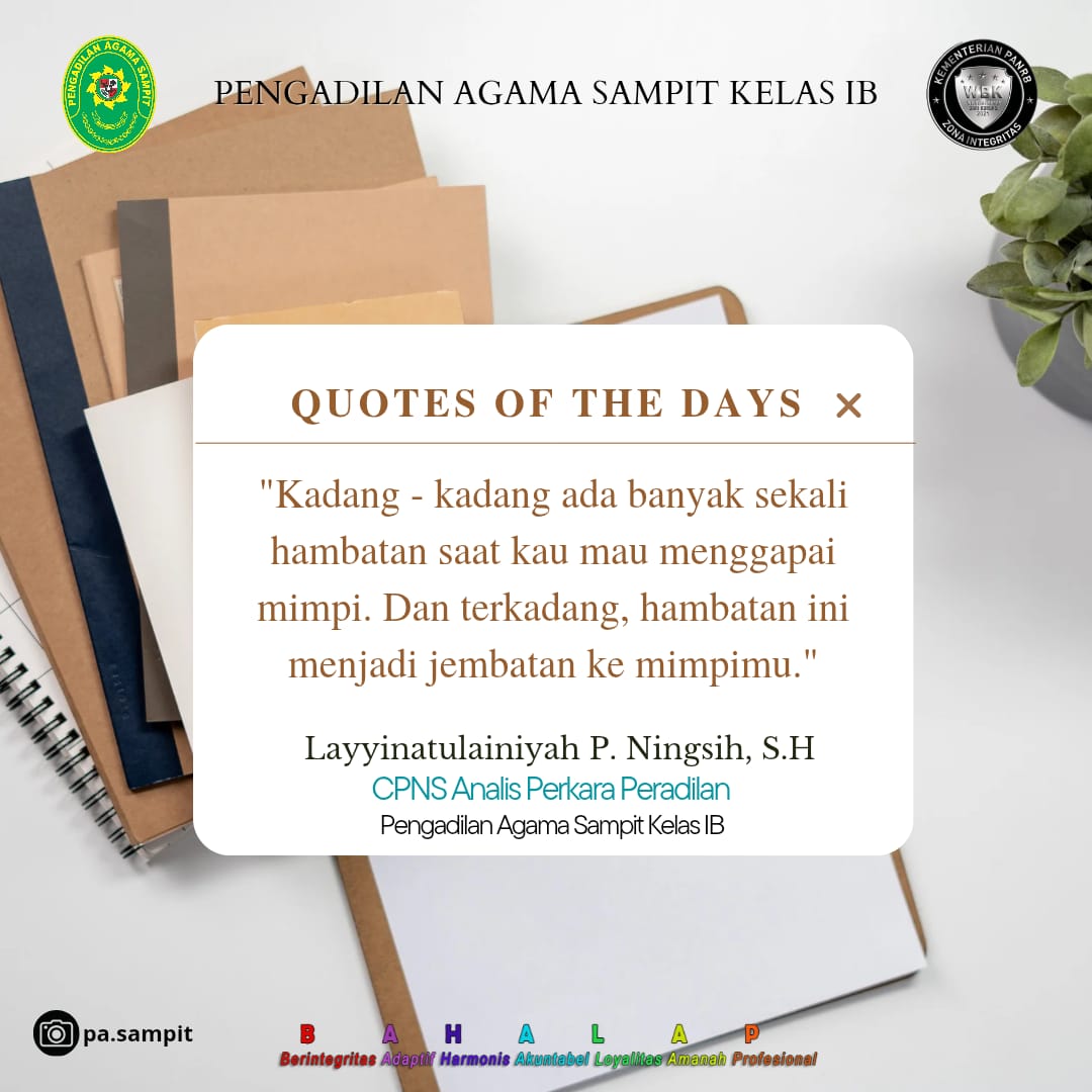 Quote Of The Days dari Pengadilan Agama Sampit: "Hambatan Bisa Menjadi Jembatan ke Mimpi"