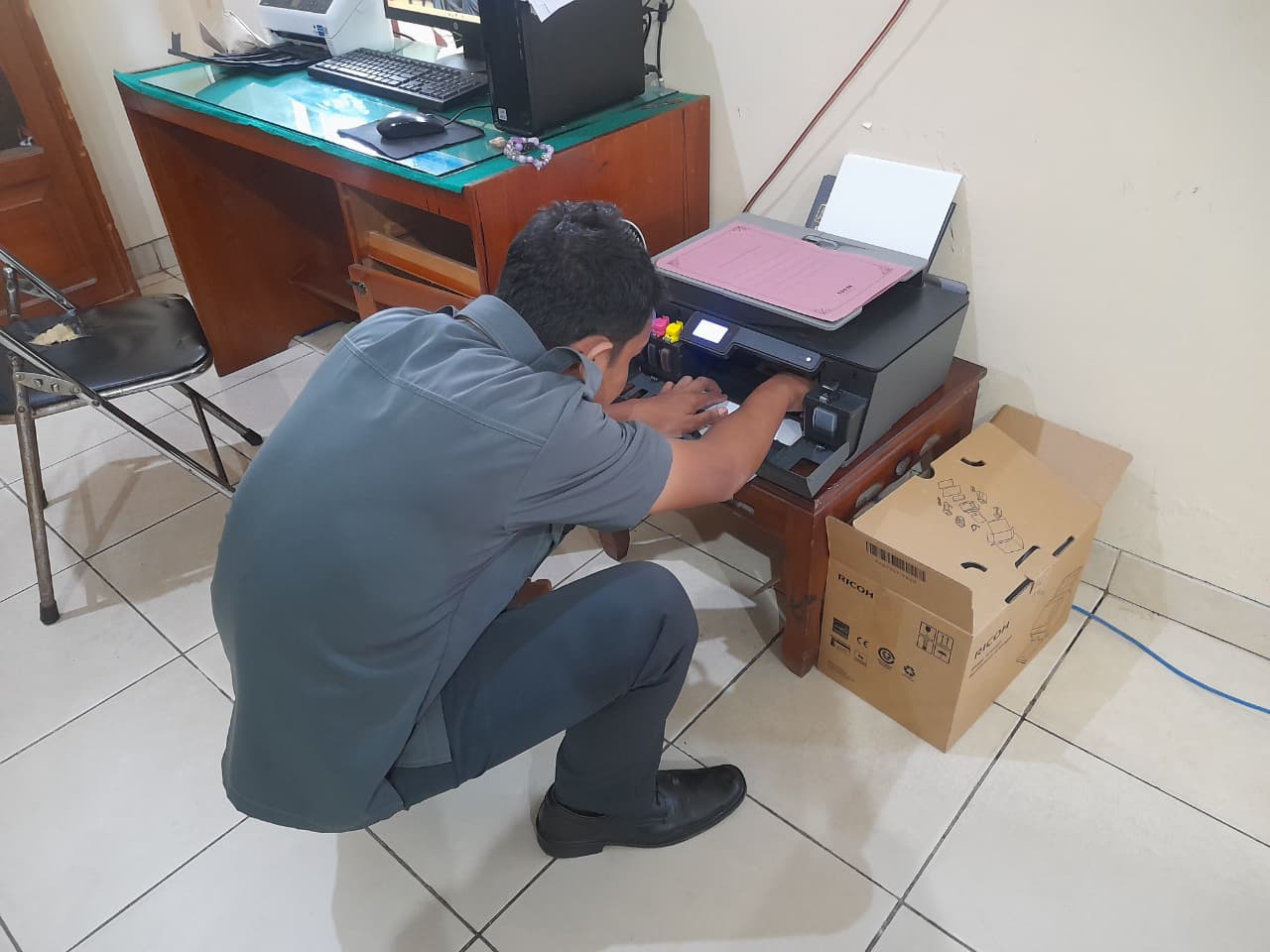 Kerusakan pada catridge printer seringkali menghambat proses pencetakan dokumen perkara maupun surat-menyurat yang menjadi bagian integral dari pelayanan di Pengadilan Agama Sampit. Melihat hal tersebut, Ifandi langsung melakukan pengecekan menyeluruh, mulai dari kondisi catridge, aliran tinta, hingga kebersihan komponen printer. Dengan keahlian teknis dan pengalaman yang ia miliki, perbaikan dapat diselesaikan dengan cepat sehingga perangkat dapat kembali digunakan secara normal.