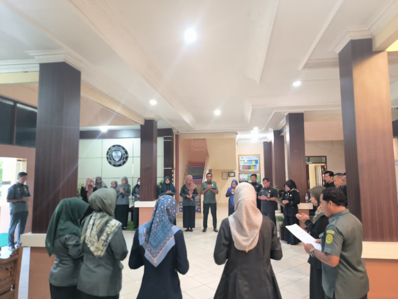 Sampit (10/12/25) — Pengadilan Agama Sampit Kelas IB kembali melaksanakan kegiatan rutin Doa Bersama Rabu Pagi, sebuah agenda mingguan yang menjadi sarana memperkuat kekompakan dan spiritualitas seluruh aparatur. Kegiatan yang berlangsung di lobi kantor ini diikuti oleh para hakim, pejabat struktural, fungsional, serta seluruh pegawai dengan suasana yang khusyuk dan penuh kekeluargaan.