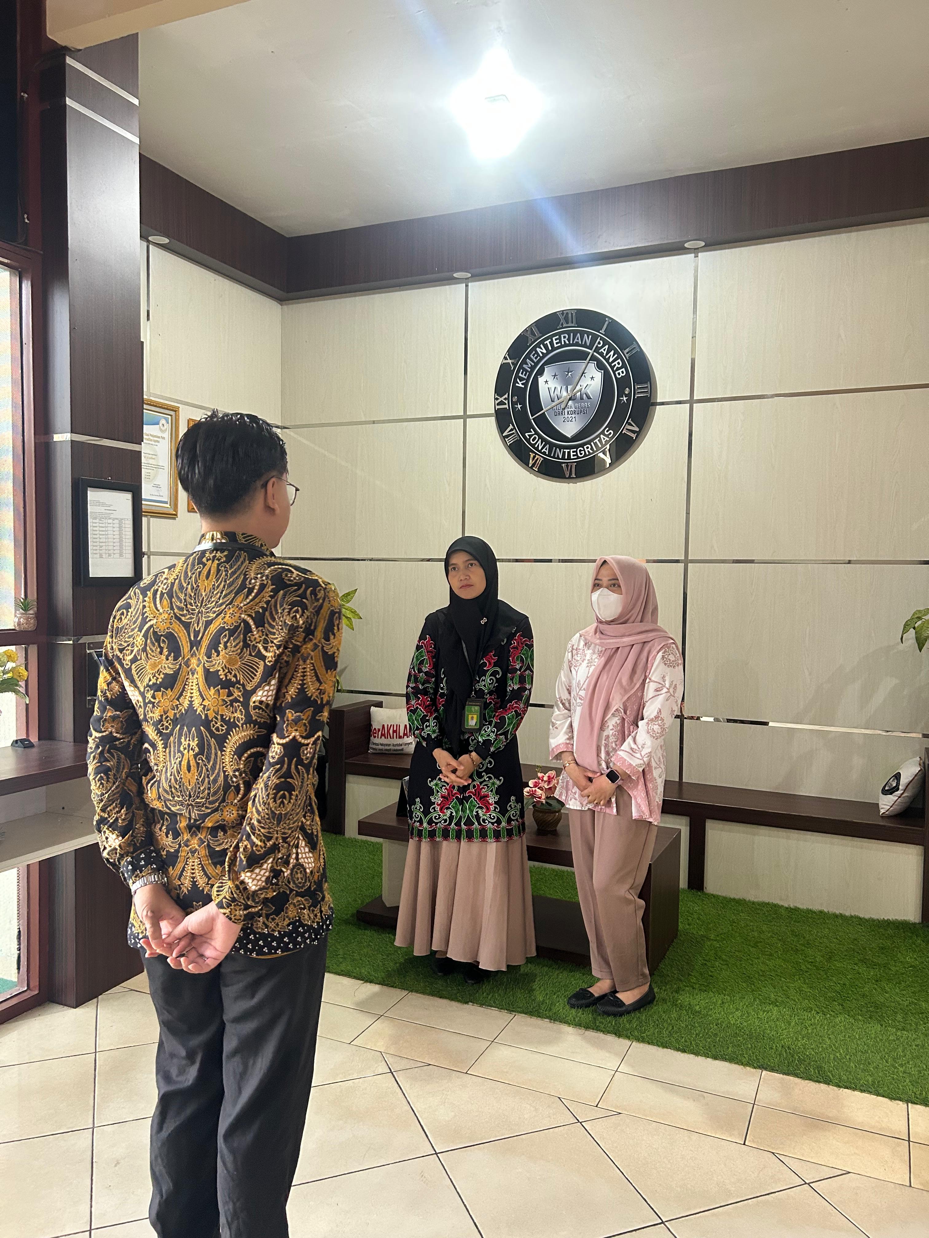 Pengadilan Agama Sampit Kelas IB kembali melaksanakan kegiatan rutin briefing pagi untuk tenaga outsourcing pada Kamis, 11 Desember 2025. Briefing yang berlangsung di area lobby pelayanan ini dipimpin oleh Plt. Kasubbag Umum & Keuangan, Dwira Kurnianto Widodo, S.T., dan dihadiri oleh dua tenaga outsourcing, Miftahu Rahmah dan Desy Ratnasari.