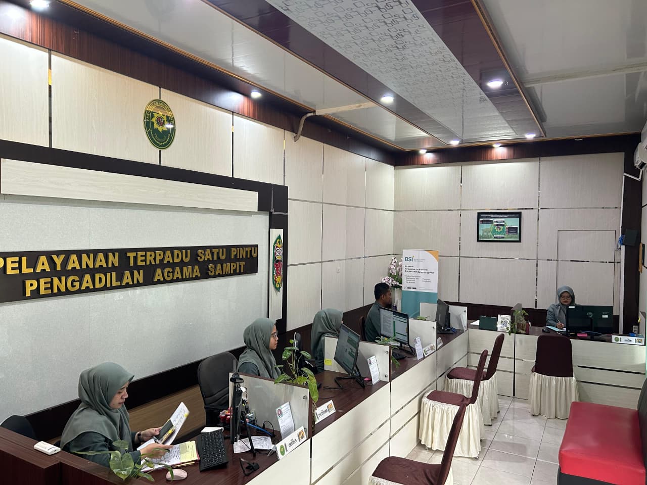 Suasana di ruang PTSP tampak tertata rapi dan kondusif. Para petugas yang mengenakan seragam hijau khas kebanggaan terlihat sigap di depan layar monitor, memastikan sistem informasi siap berjalan tanpa kendala. Kesiapan di pagi hari ini merupakan bagian dari komitmen berkelanjutan PA Sampit untuk menghargai waktu masyarakat dan memberikan kenyamanan maksimal.