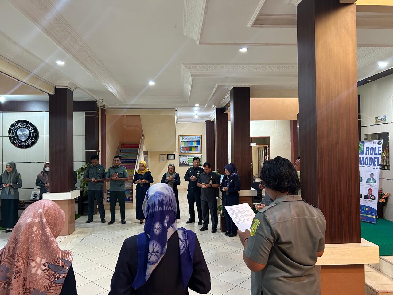 Setelah kegiatan doa selesai, para pegawai langsung menuju pos layanan masing-masing untuk menjalankan tugas seperti biasa. Inisiatif doa bersama yang dipandu oleh Hery Anshori ini membuktikan bahwa koordinasi yang kuat dan nilai spiritual tetap menjadi pondasi utama bagi PA Sampit dalam memberikan pelayanan terbaik bagi masyarakat Kabupaten Kotawaringin Timur.