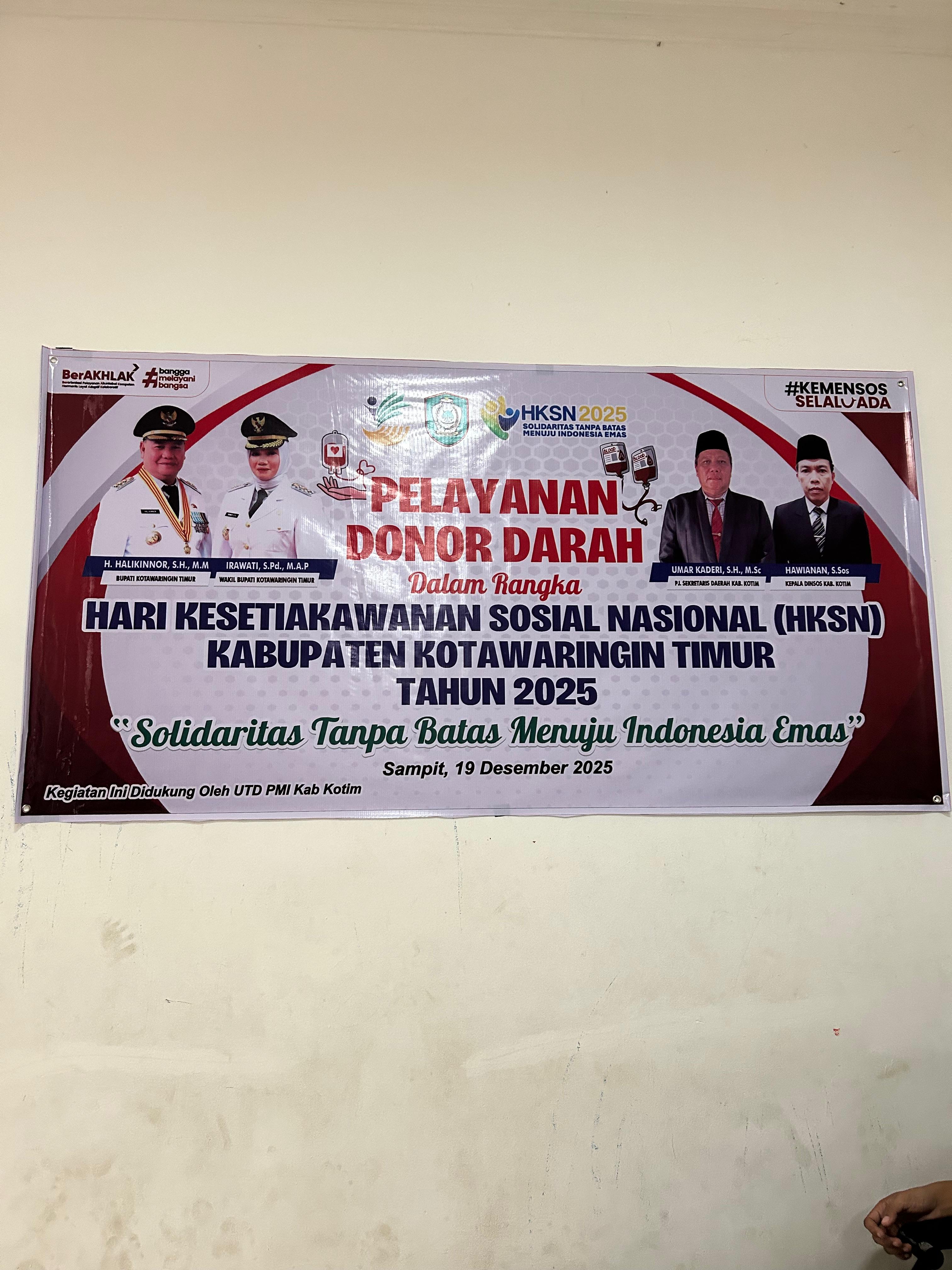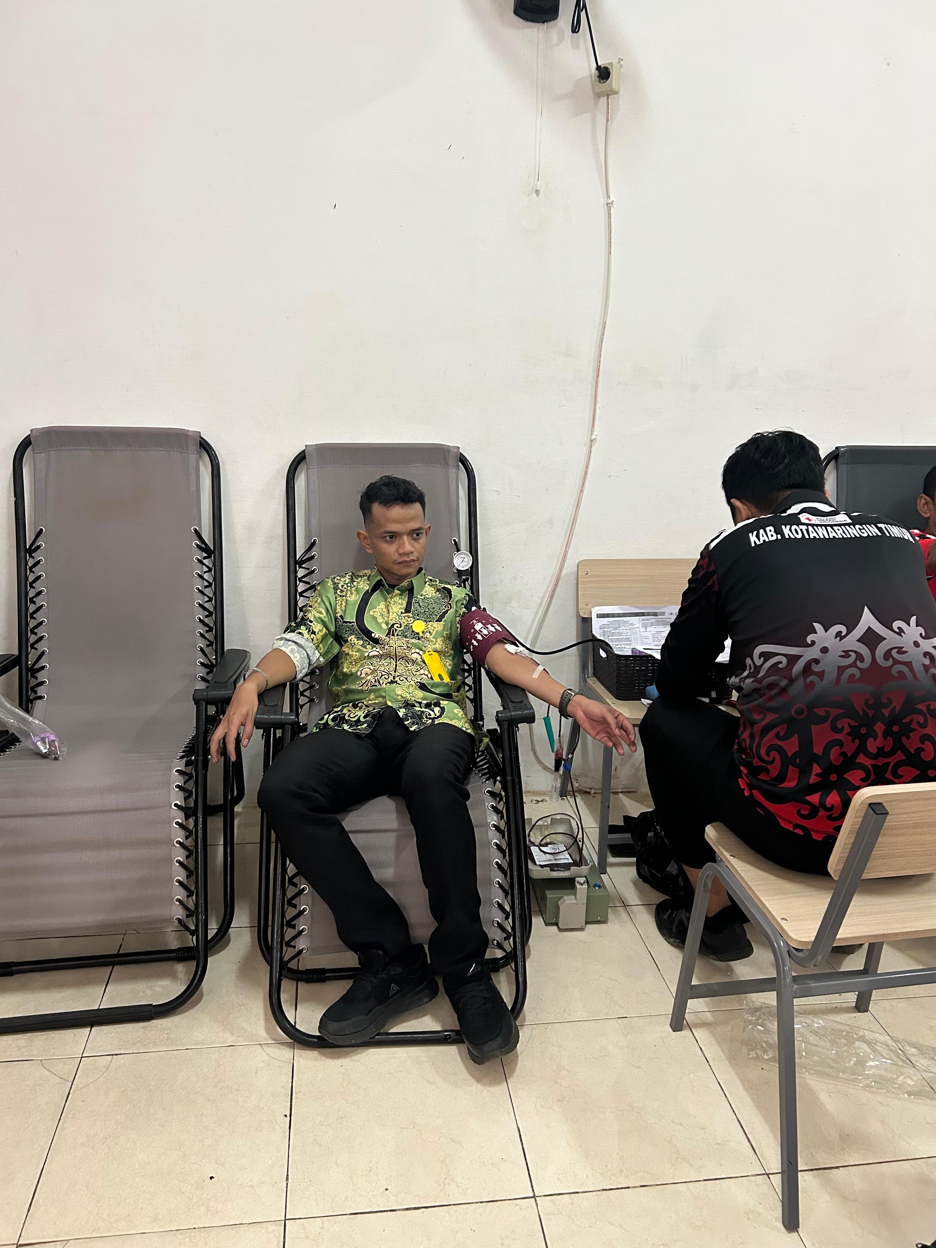 Kegiatan bertajuk "Pelayanan Donor Darah dalam Rangka HKSN 2025" ini mengusung tema "Solidaritas Tanpa Batas Menuju Indonesia Emas". Muhammad Amin tampak mengikuti prosedur dengan tenang, mulai dari pemeriksaan kesehatan awal hingga proses pengambilan darah yang dilakukan oleh tenaga medis dari UTD PMI Kabupaten Kotawaringin Timur.