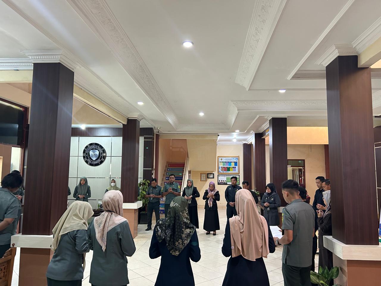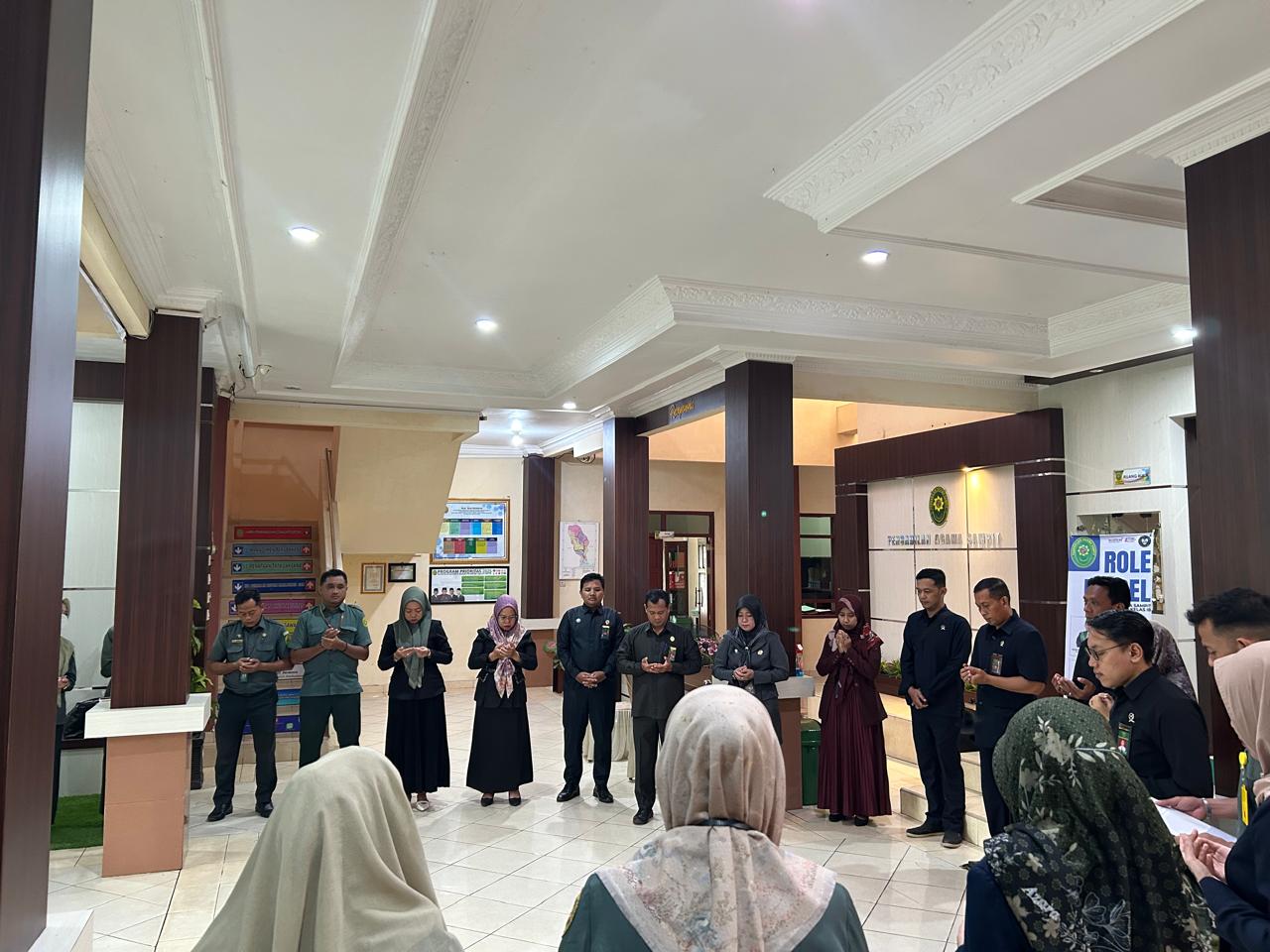 Doa bersama dilaksanakan sebagai agenda rutin setiap Rabu pagi sebelum memulai aktivitas pelayanan kepada masyarakat. Tampak khidmat mengikuti doa yang dipanjatkan bersama, dengan tujuan memohon kelancaran, keselamatan, serta keberkahan dalam menjalankan tugas dan tanggung jawab sebagai aparatur peradilan.