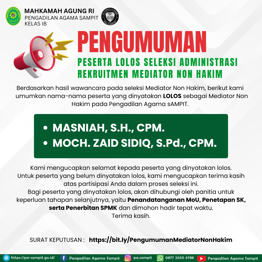 SURAT KEPUTUSAN : htps://bit.ly/PengumumanMediatorNonHakim