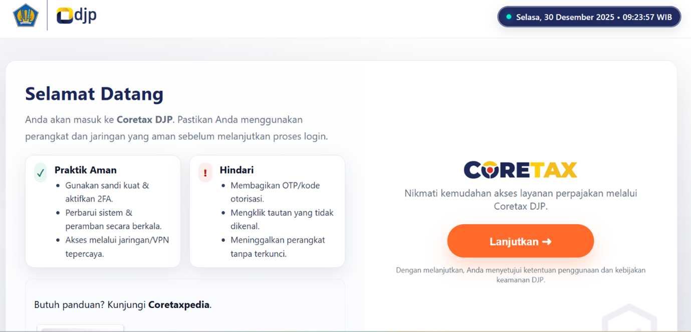 Coretax adalah sistem administrasi perpajakan digital terbaru yang dikembangkan oleh Direktorat Jenderal Pajak (DJP) untuk menyatukan seluruh layanan pajak dalam satu platform terpadu. Kehadiran Coretax menandai langkah besar digitalisasi perpajakan di Indonesia, sekaligus mengubah cara wajib pajak mengurus pelaporan dan administrasi pajak sehari-hari guna meningkatkan efektivitas, transparansi, dan akurasi pengelolaan data perpajakan. Melalui aktivasi akun Coretax, pegawai diharapkan dapat mengakses layanan perpajakan secara mandiri, mudah, dan terintegrasi dalam satu sistem.