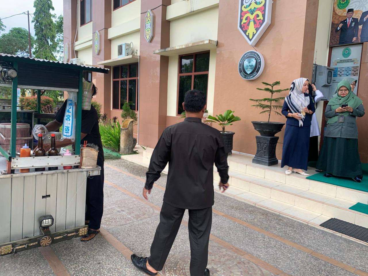 Tanpa sekat formalitas, para hakim, pegawai fungsional, struktural, hingga seluruh aparatur tampak antre dengan tertib di depan gerobak mi ayam. Keceriaan terpancar jelas saat satu per satu mangkuk mi panas dengan topping ayam kecap yang melimpah disajikan. Halaman kantor pun seketika berubah menjadi ruang makan terbuka yang penuh dengan tawa dan obrolan hangat, menciptakan jeda yang menyegarkan di sela rutinitas kedinasan yang cukup padat.