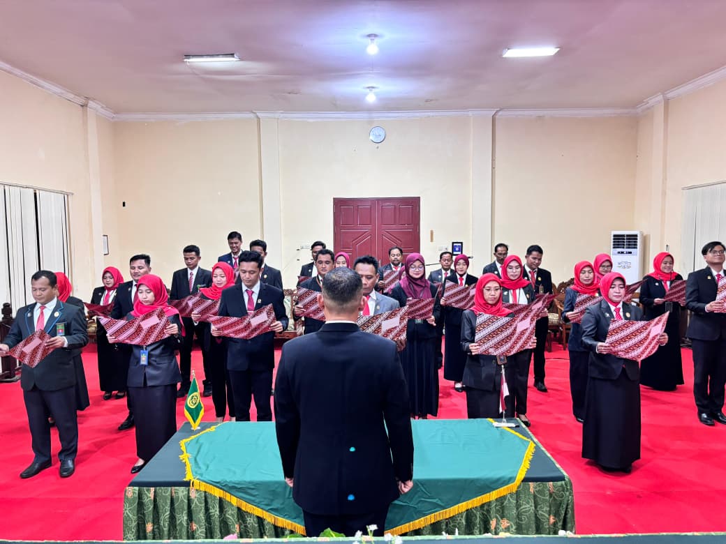 SAMPIT – Bertempat di Aula Kantor Pengadilan Agama (PA) Sampit Kelas IB, seluruh jajaran aparatur melaksanakan prosesi pembacaan Pakta Integritas secara kolektif pada Senin, 5 Januari 2026. Kegiatan yang berlangsung dengan penuh khidmat ini dipimpin langsung oleh Ketua PA Sampit dan diikuti oleh seluruh Hakim, pejabat struktural, fungsional, serta staf. Dengan berdiri tegak dan suara yang lantang, setiap aparatur menyatakan komitmennya untuk menjaga integritas, profesionalisme, serta menjauhi segala bentuk praktik korupsi dan gratifikasi dalam menjalankan tugas kedinasan.