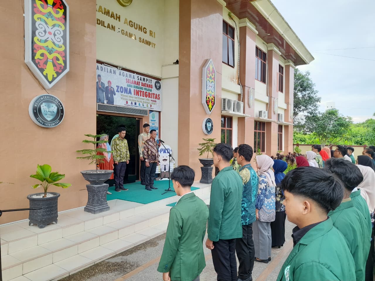 Sebagai Pembina Apel adalah Wakil Ketua Pengadilan Agama Sampit Kelas Bapak Hairil Anwar, S.Ag., dan Ragil Tri Wicaksana (PPPK) sebagai Pemimpin Apel, Meliyeni, S.H., (PPPK) Pembaca 8 Nilai Utama Mahkamah Agung RI Apriansyah, S.H, (Panitera Pengganti) dan pembaca do’a Wahyudi (PPPK).