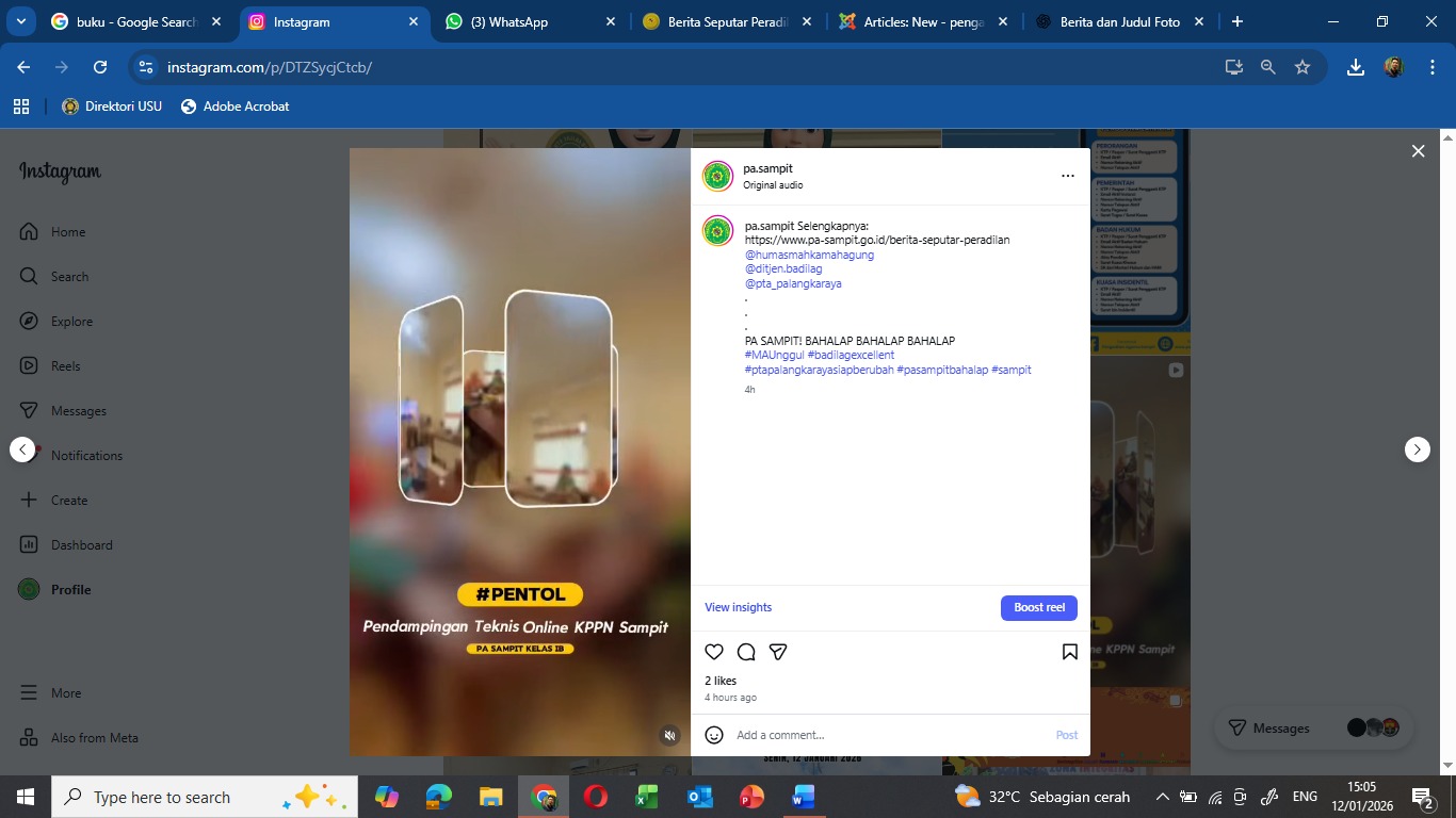 Pengadilan Agama Sampit Kelas IB melaksanakan dokumentasi video kegiatan Pendampingan Teknis Online KPPN Sampit (#PENTOL) yang dilaksanakan pada 9 Januari 2026. Dokumentasi ini dibuat sebagai bentuk publikasi dan arsip kegiatan, sekaligus upaya menyampaikan informasi secara informatif dan menarik kepada masyarakat.