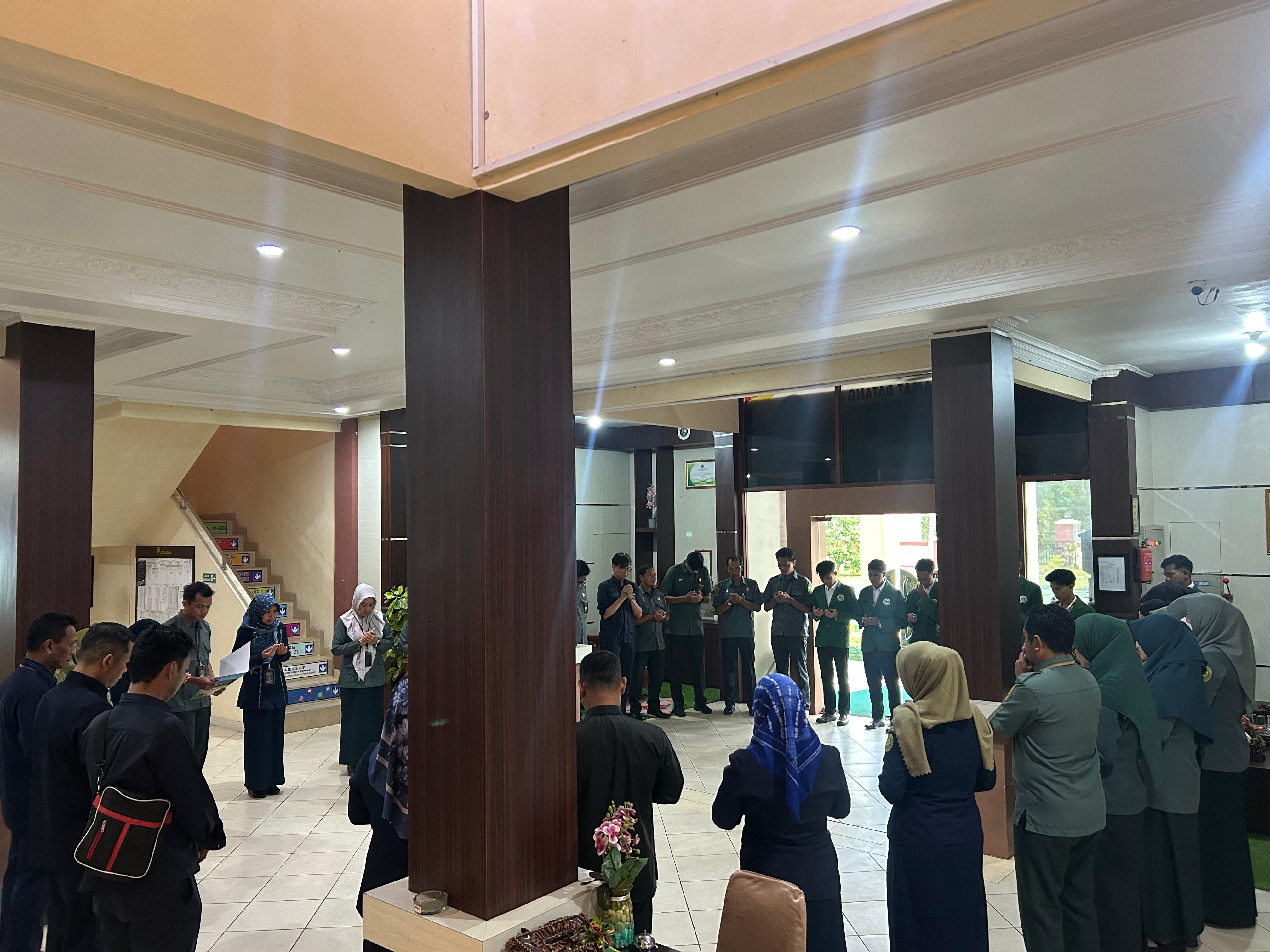Pengadilan Agama Sampit Kelas IB kembali melaksanakan doa bersama pada Selasa pagi, 13 Januari 2026. Kegiatan ini berlangsung dengan khusyuk di lingkungan kantor Pengadilan Agama Sampit dan diikuti oleh seluruh aparatur, serta mahasiswa PKH UIN Palangka Raya. Kegiatan ini dilaksanakan di lobi depan PA Sampit Kelas IB.
