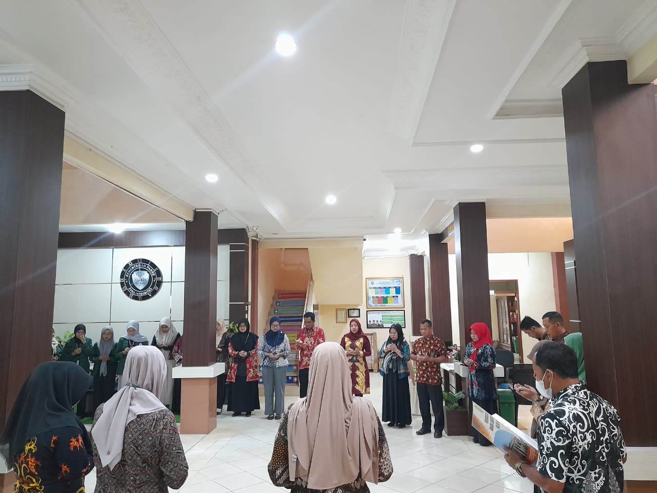 Dalam suasana yang khidmat dan penuh kekhusyukan, Bapak Wahyudi memimpin doa dengan harapan agar seluruh aparatur senantiasa diberikan kelancaran dalam menjalankan tugas, kesehatan, serta keselamatan, khususnya menjelang libur nasional yang akan datang.