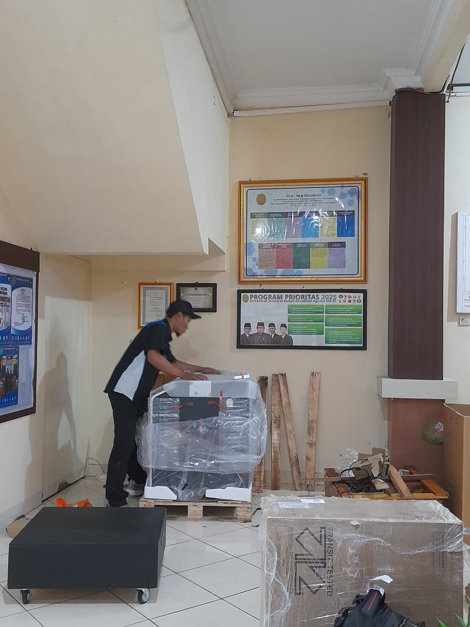 Proses perakitan mesin fotokopi dilaksanakan secara bertahap dan sesuai dengan standar teknis yang berlaku. Kegiatan ini dipantau langsung oleh teknisi sarana dan prasarana Pengadilan Agama Sampit, Muhammad Ifandi, S.T., guna memastikan seluruh tahapan perakitan berjalan dengan baik, aman, dan sesuai spesifikasi.