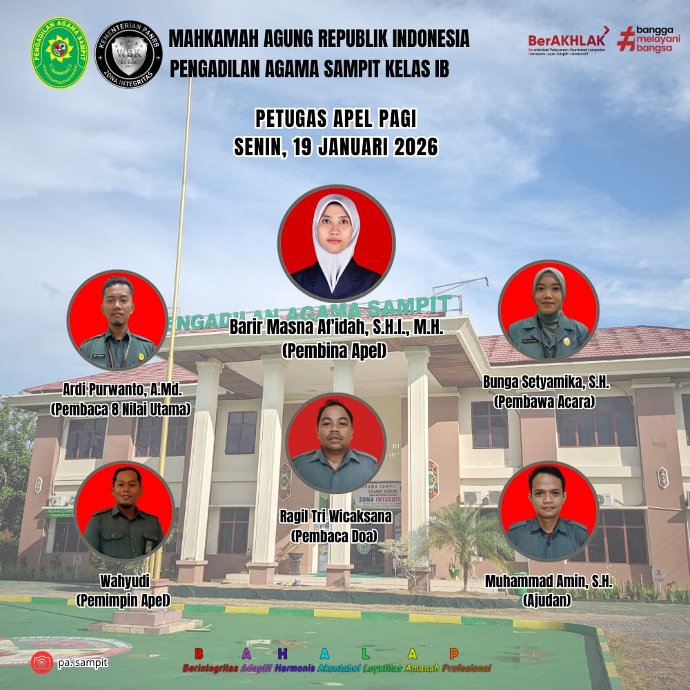 Susunan Petugas Apel Senin Pagi PA Sampit Kelas IB, 19 Januari 2026