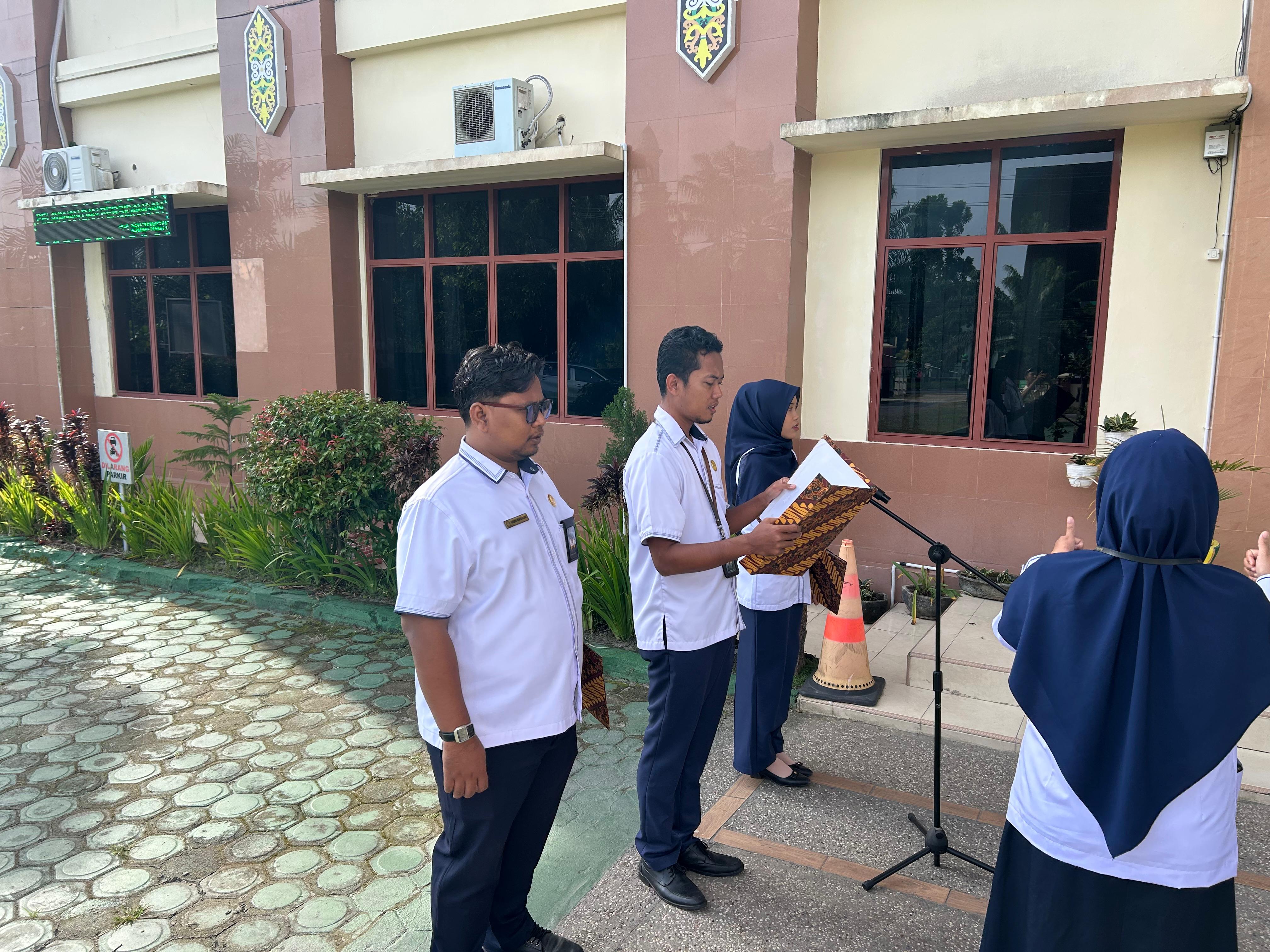 Ardi Purwanto, A.Md Pimpin Pembacaan 8 Nilai Utama Mahkamah Agung pada Apel Senin Pagi PA Sampit
