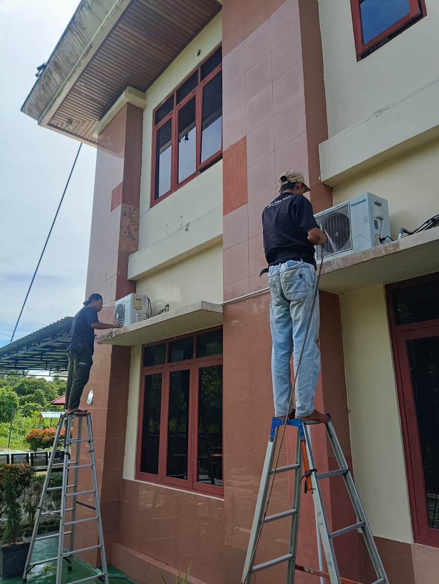 Service AC condensor meliputi pembersihan unit, pengecekan fungsi pendingin, serta memastikan kinerja AC tetap stabil untuk menunjang kenyamanan aparatur dalam melaksanakan tugas administrasi dan pelayanan perkara. Kegiatan ini dilakukan oleh petugas teknis dengan tetap memperhatikan aspek keamanan kerja.